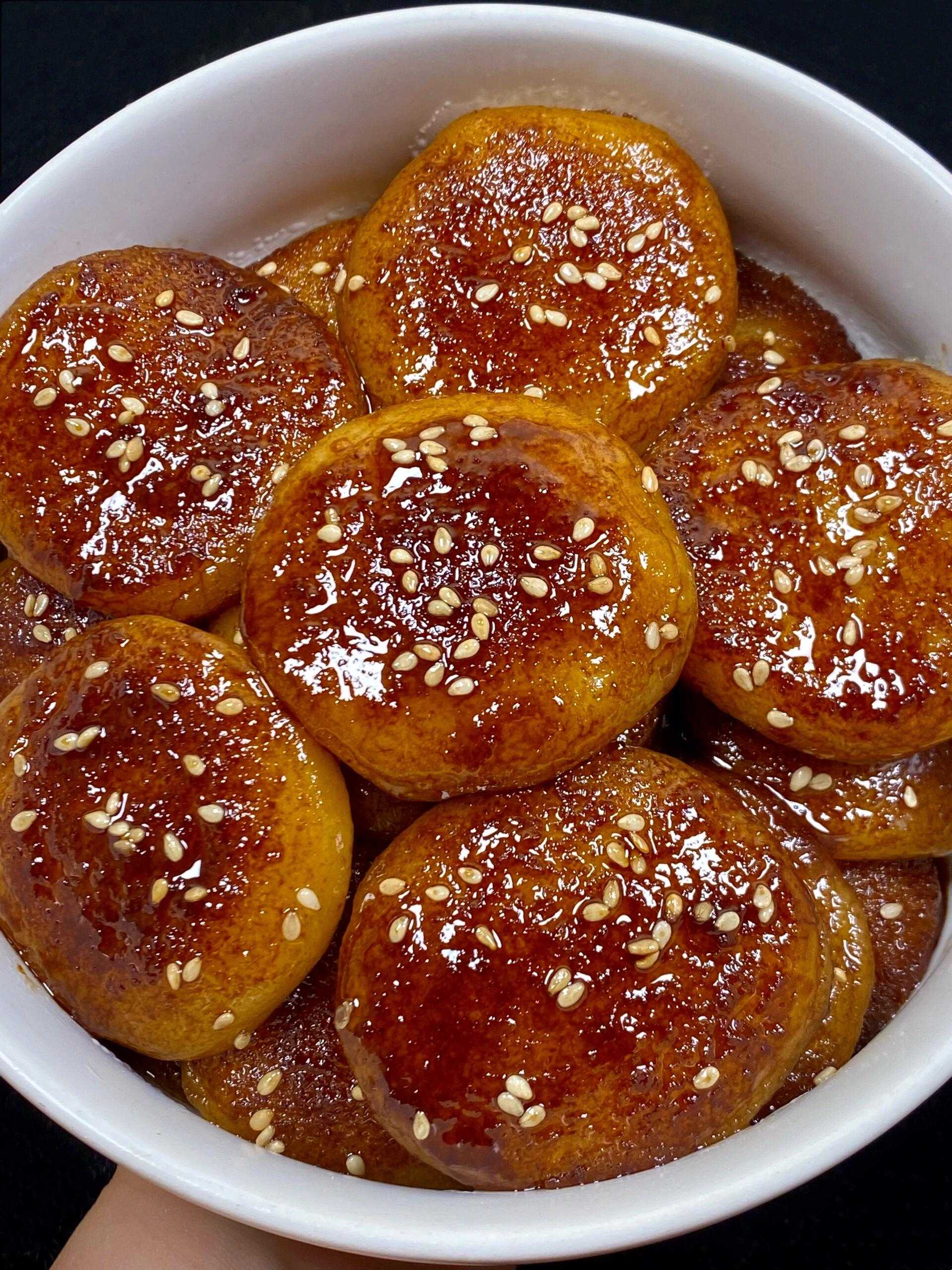 Sweet Fried Dumplings | ["flour","sugar","sesame seeds","oil"] | ["dumpling:200g"] | |