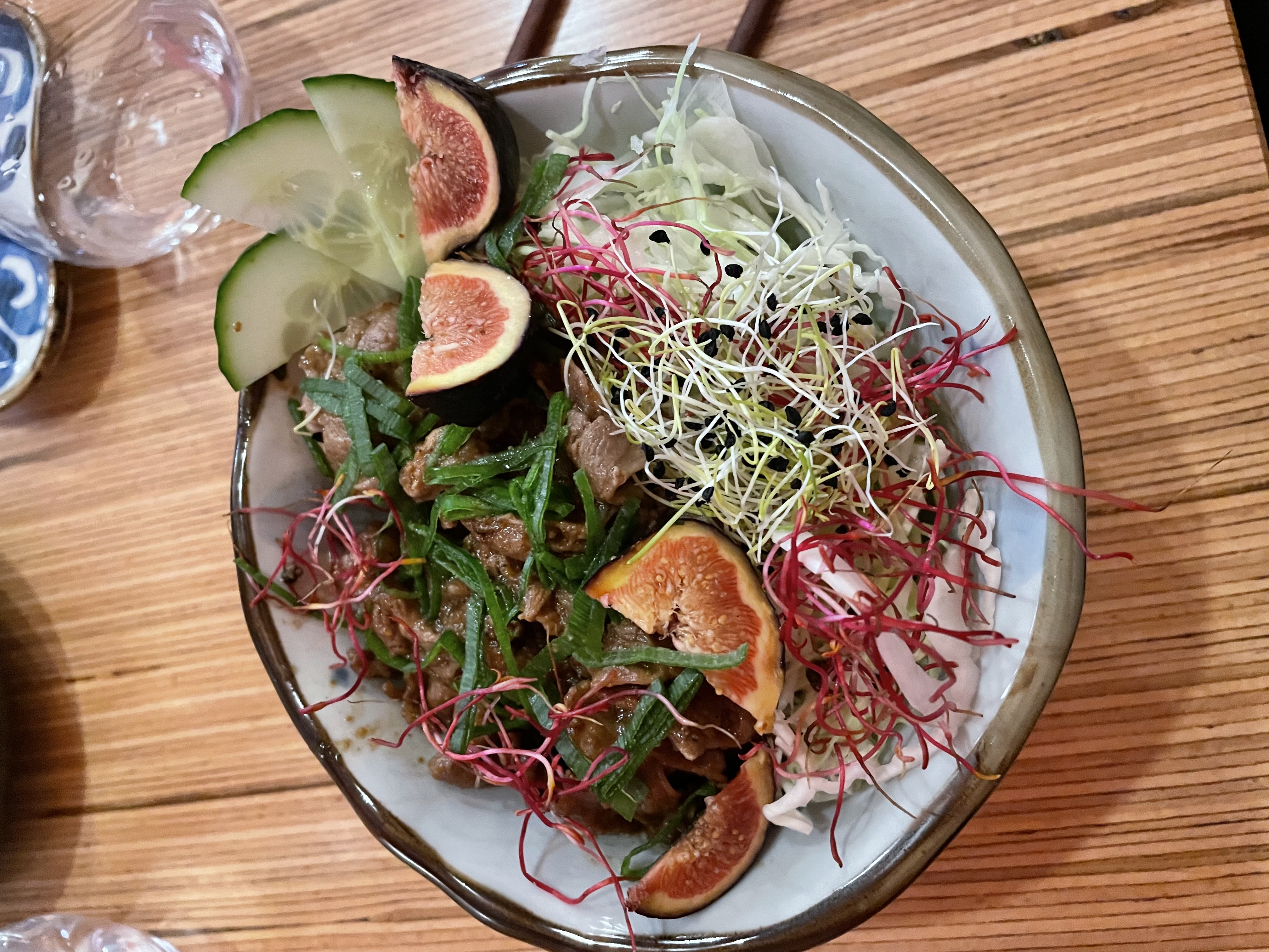 Meat Salad | ["beef","cabbage","figs","cucumber","microgreens"] | ["meat:200g","vegetables:150g","fruits:50g"] | |