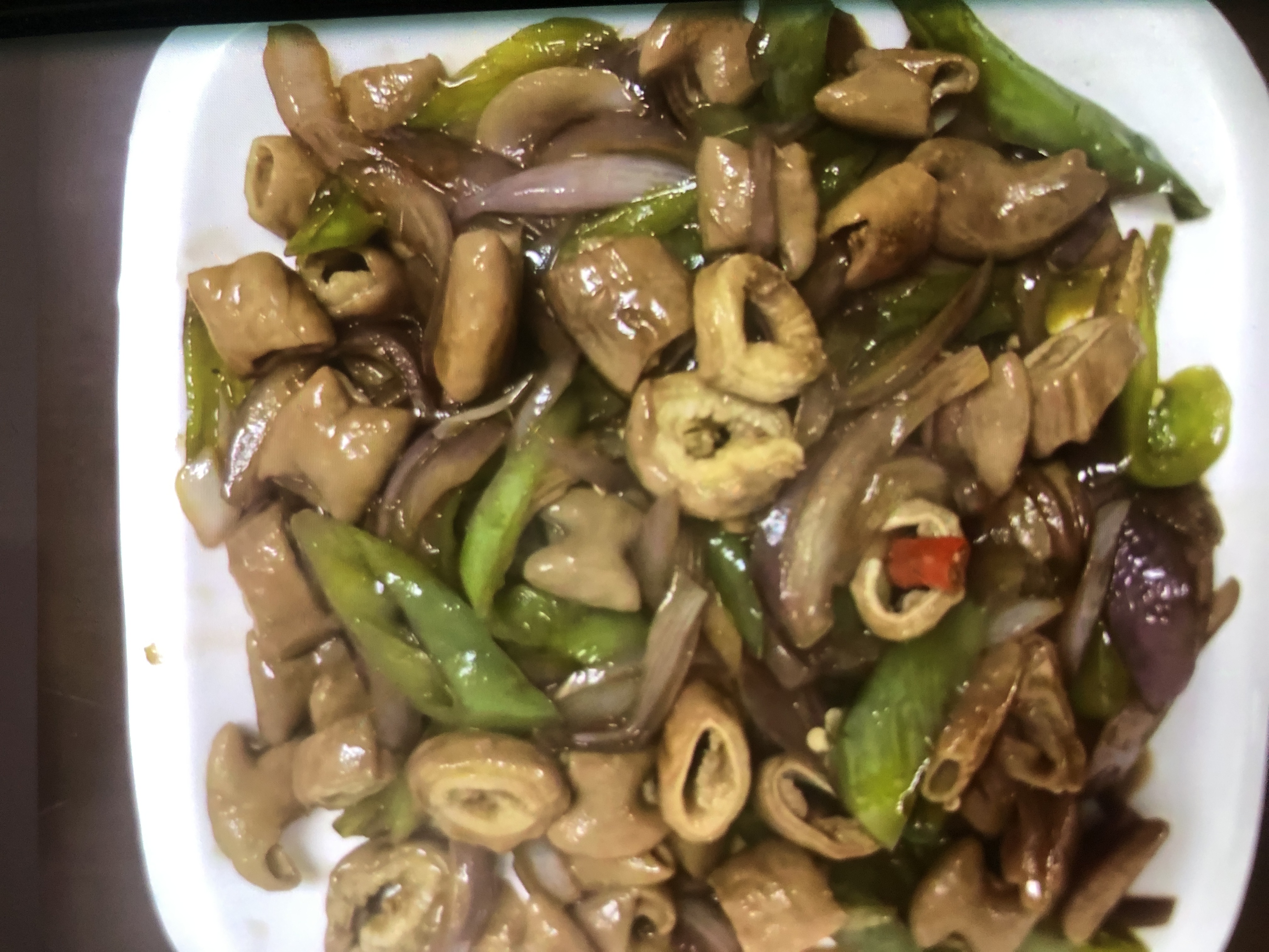 Stir-fried meat with vegetables | ["meat","green peppers","onions","spices"] | ["meat:200g","vegetables:150g"] | |