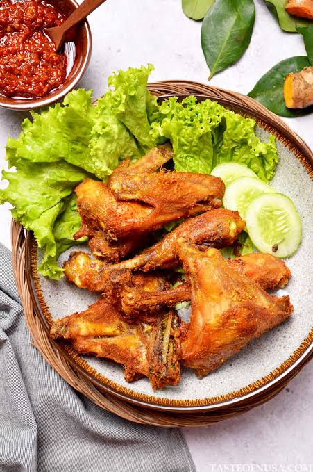 Fried Chicken | ["fried chicken","lettuce","cucumber","sambal sauce"] | ["chicken:300g","lettuce:50g","cucumber:50g","sauce:50g"] | |