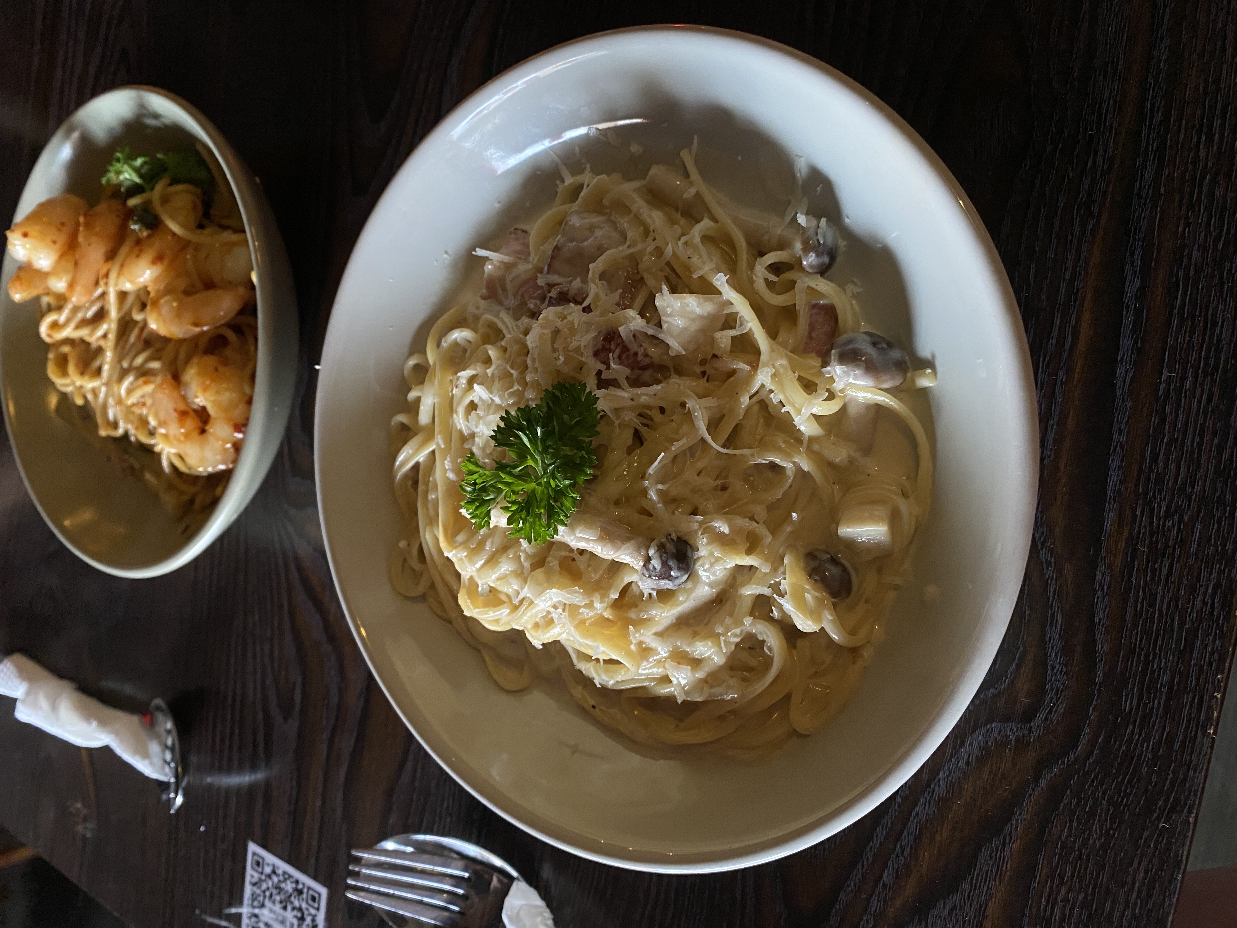 Pasta Carbonara | ["pasta","cream","bacon","cheese","mushrooms"] | ["pasta:300g","cream:50g","bacon:50g"] | |