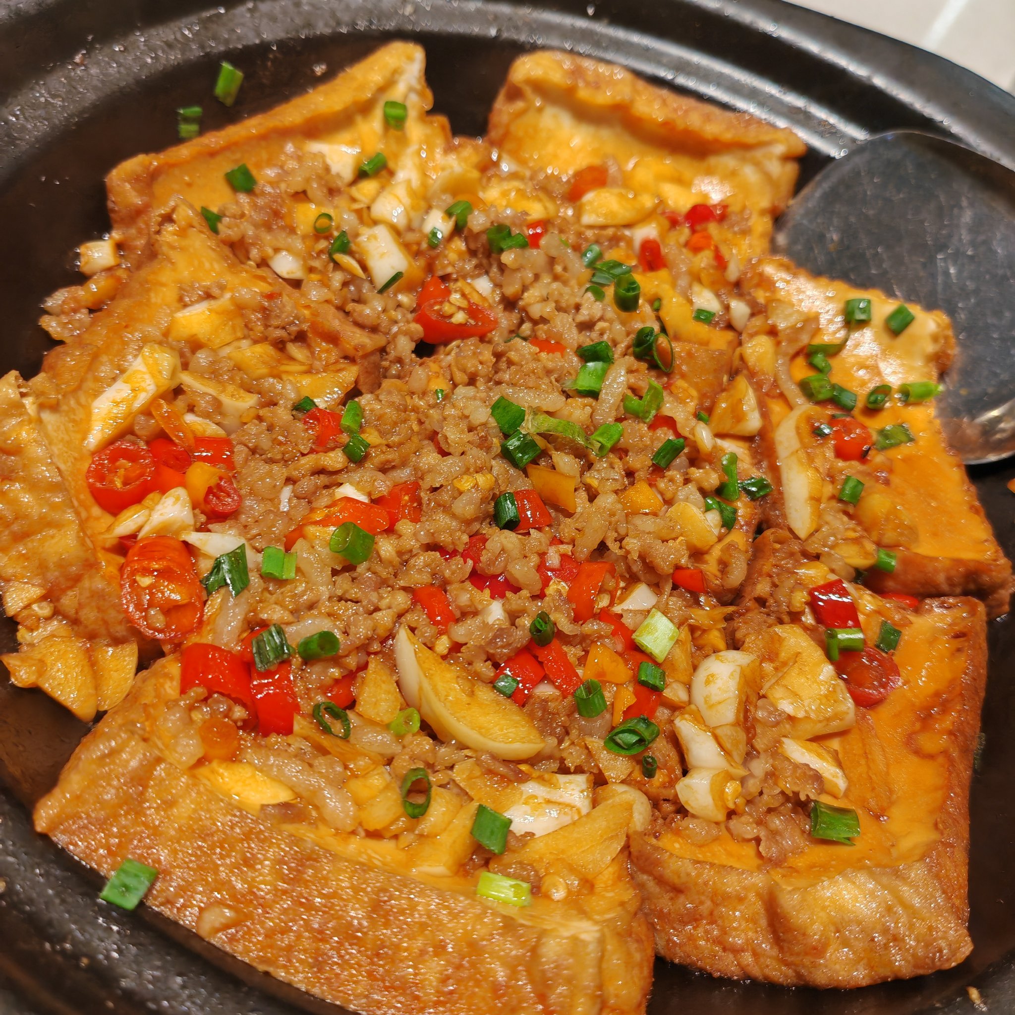 Stir-fried Tofu with Minced Meat | ["tofu","minced meat","red peppers","green onions","garlic"] | ["tofu:300g","minced meat:100g","vegetables:50g"] | |