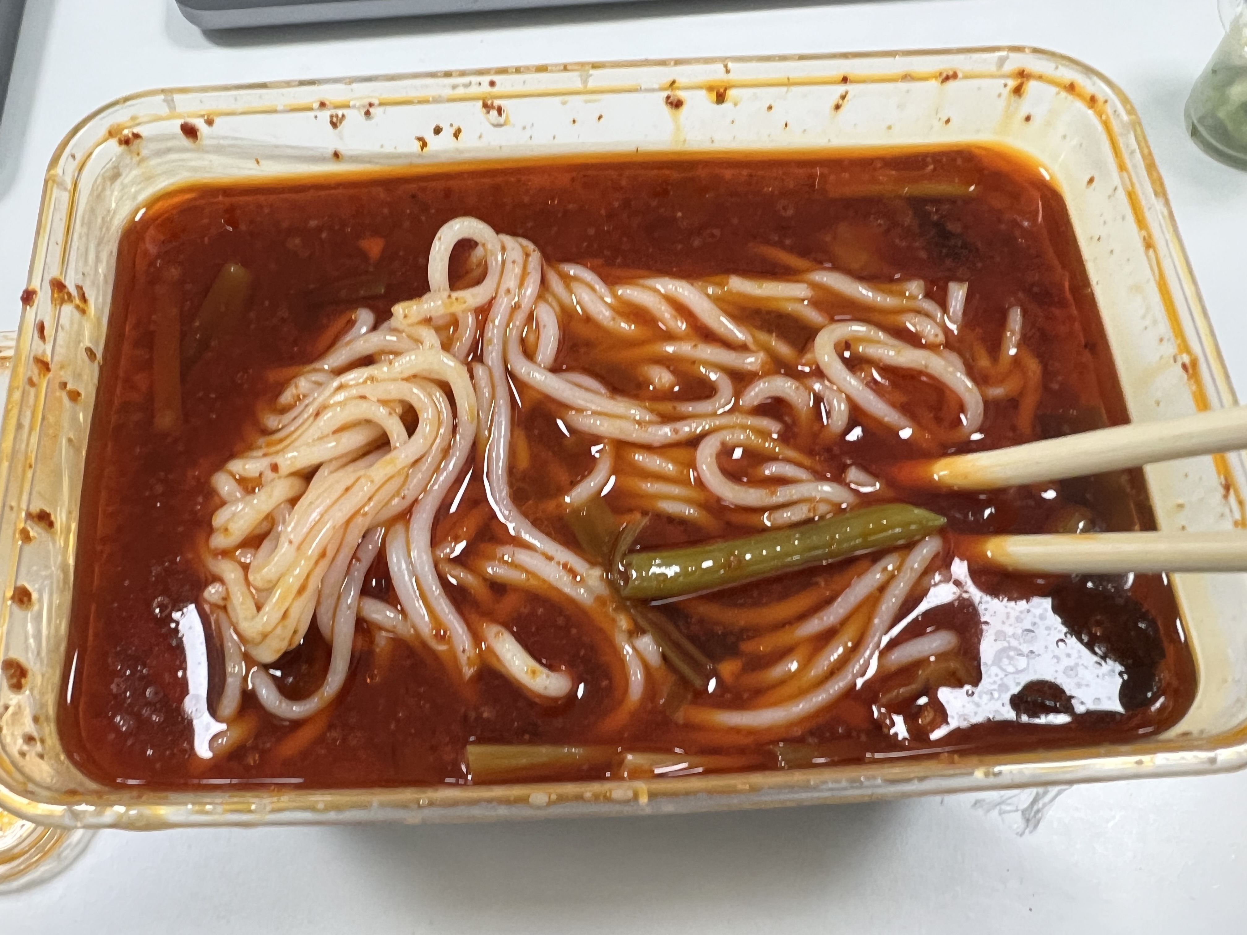 Spicy Noodles | ["noodles","spicy sauce","vegetables"] | ["noodles:300g","sauce:100g"] | |