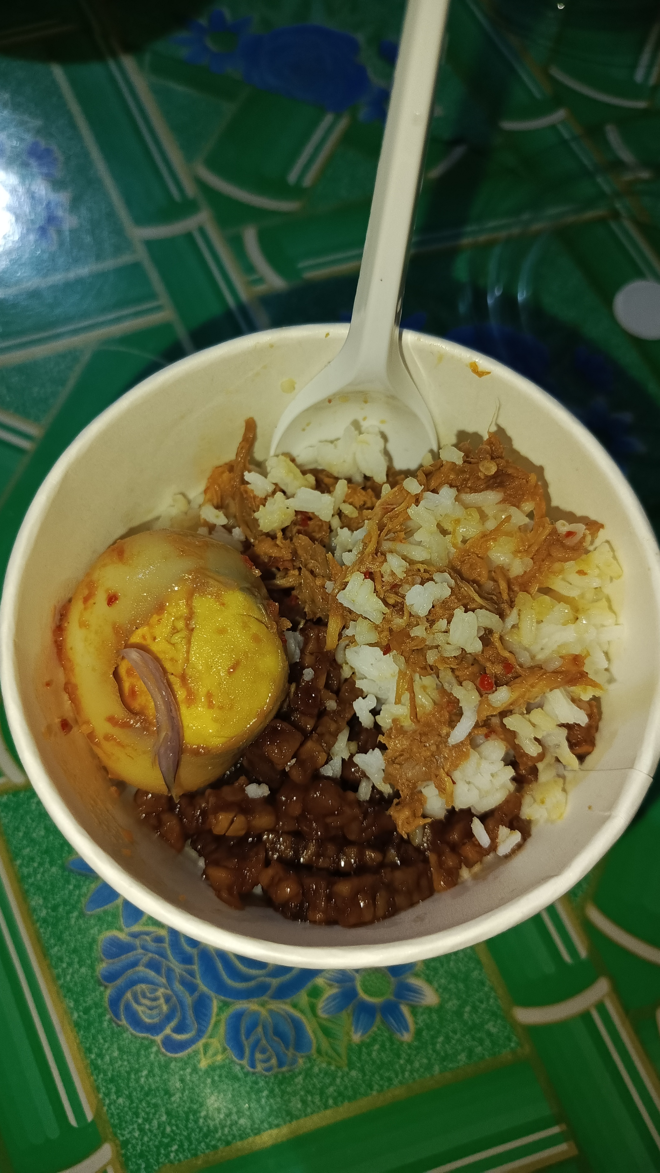 Rice Bowl with Egg and Meat | ["rice","egg","meat","spices"] | ["rice:300g","egg:50g","meat:100g"] | |