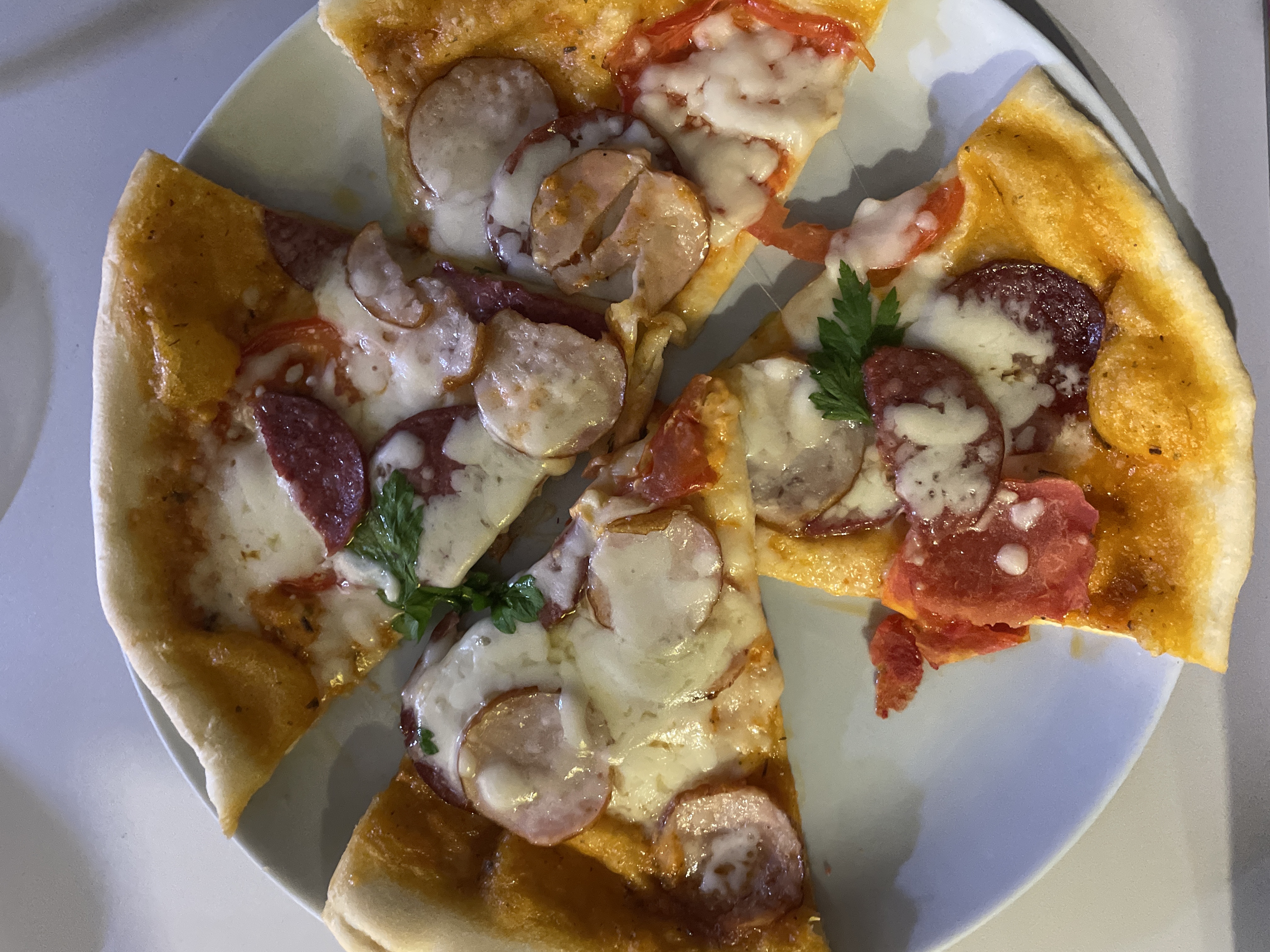 Pizza | ["pizza dough","cheese","pepperoni","sausage","tomato sauce"] | ["pizza:300g"] | |