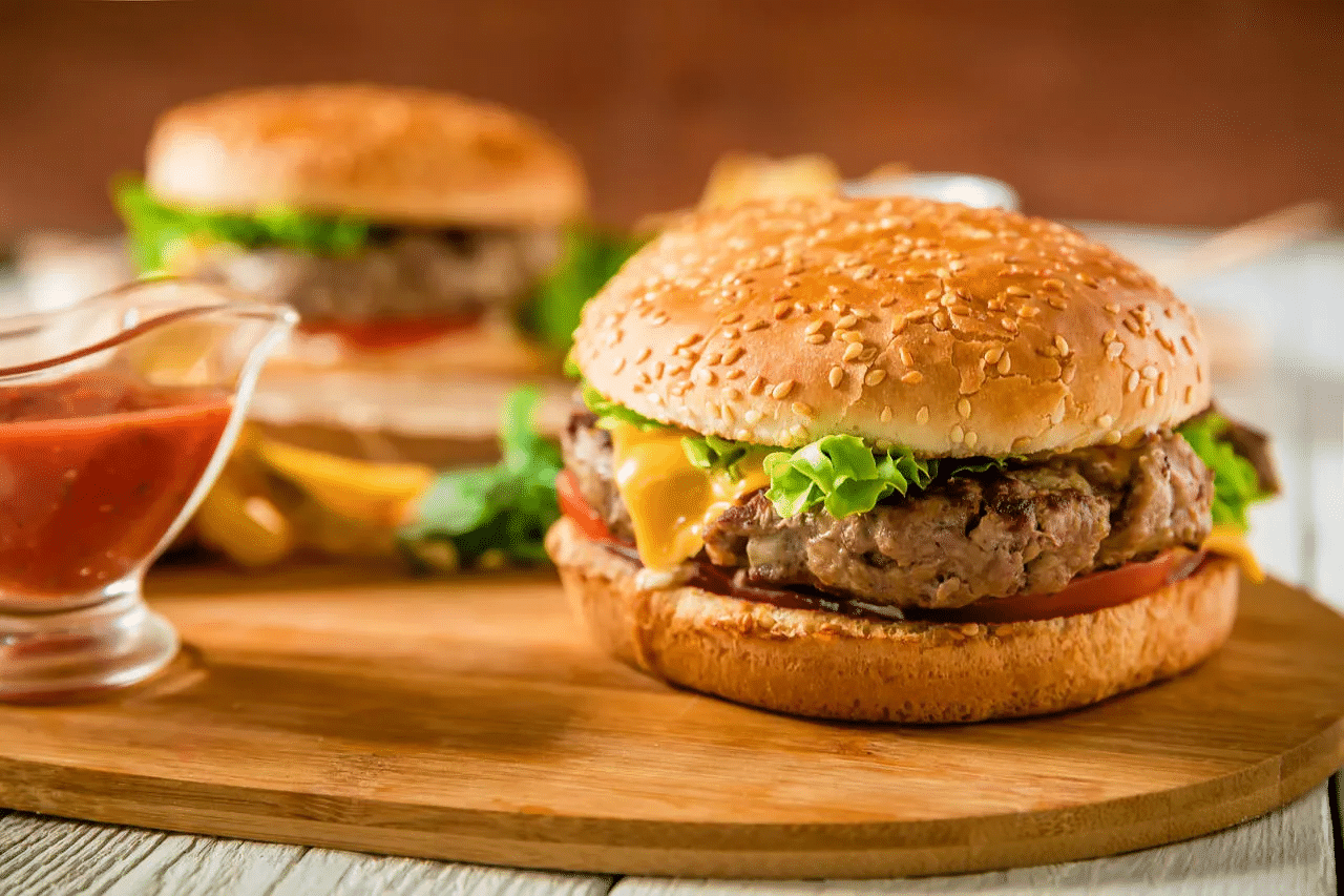 Cheeseburger | ["beef patty","cheddar cheese","lettuce","tomato","sesame seed bun","ketchup"] | ["burger:250g","sauce:50g"] | |