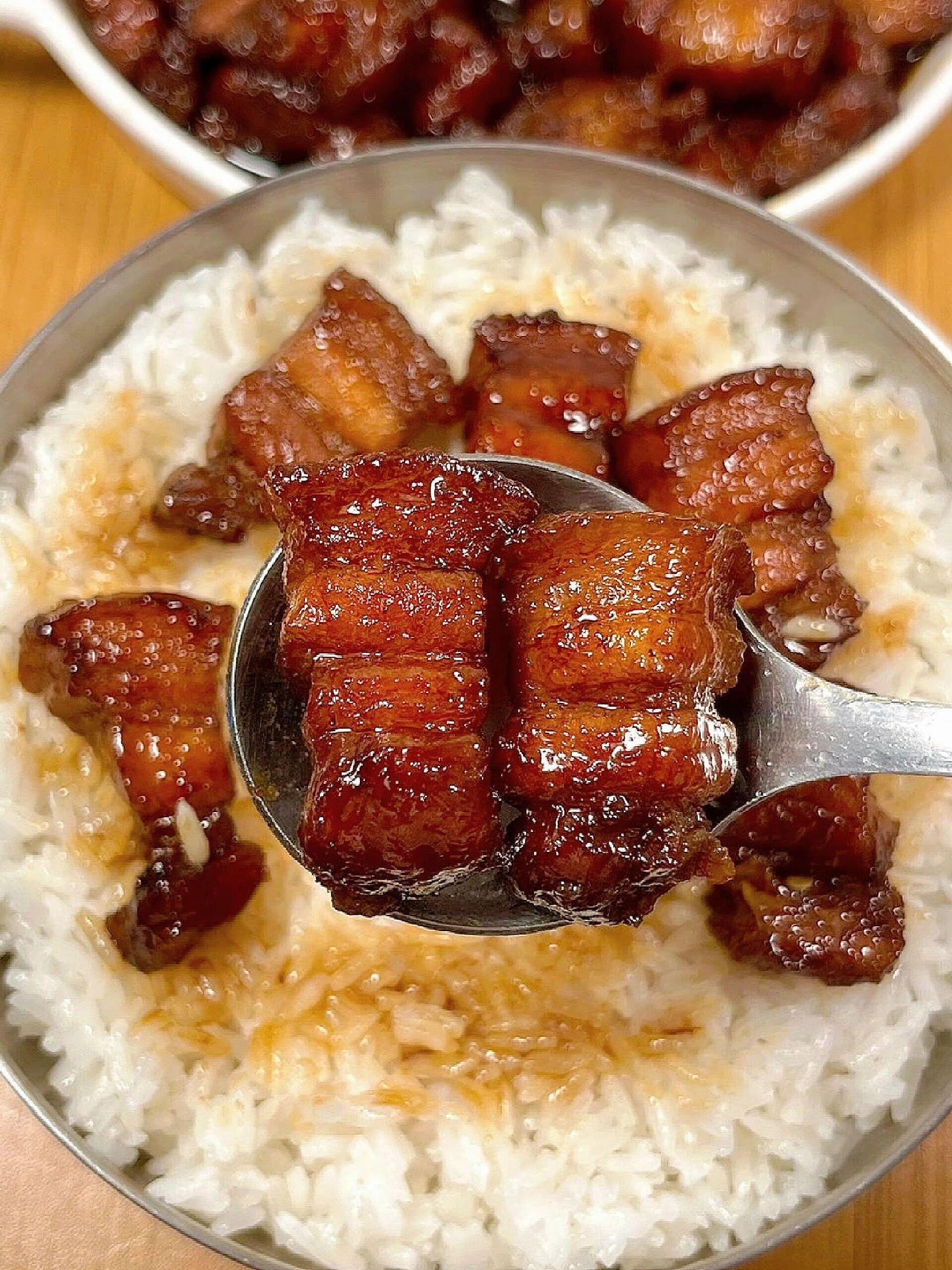 Braised Pork with Rice | ["pork","rice","soy sauce","sugar"] | ["pork:200g","rice:150g"] | |