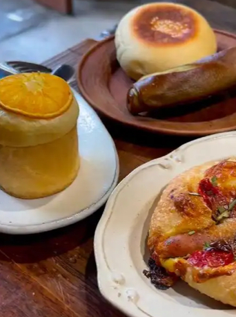 Assorted Pastries | ["bread","sausage","cheese","orange"] | ["pastry1:150g","pastry2:100g","pastry3:120g"] | |