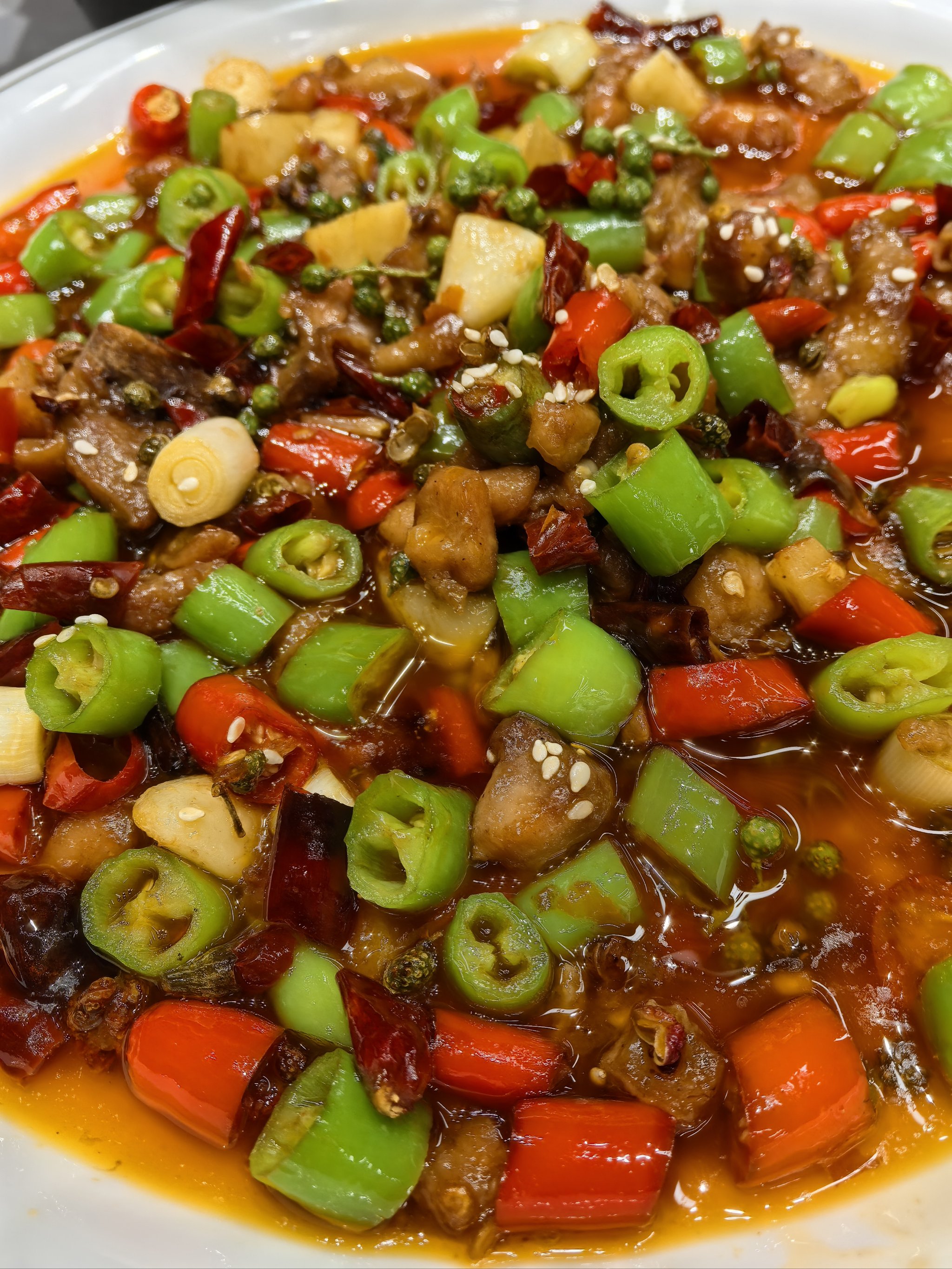 Spicy Chicken Dish | ["chicken","spices","lotus root","green onions"] | ["chicken:250g","spices:50g","vegetables:100g"] | |