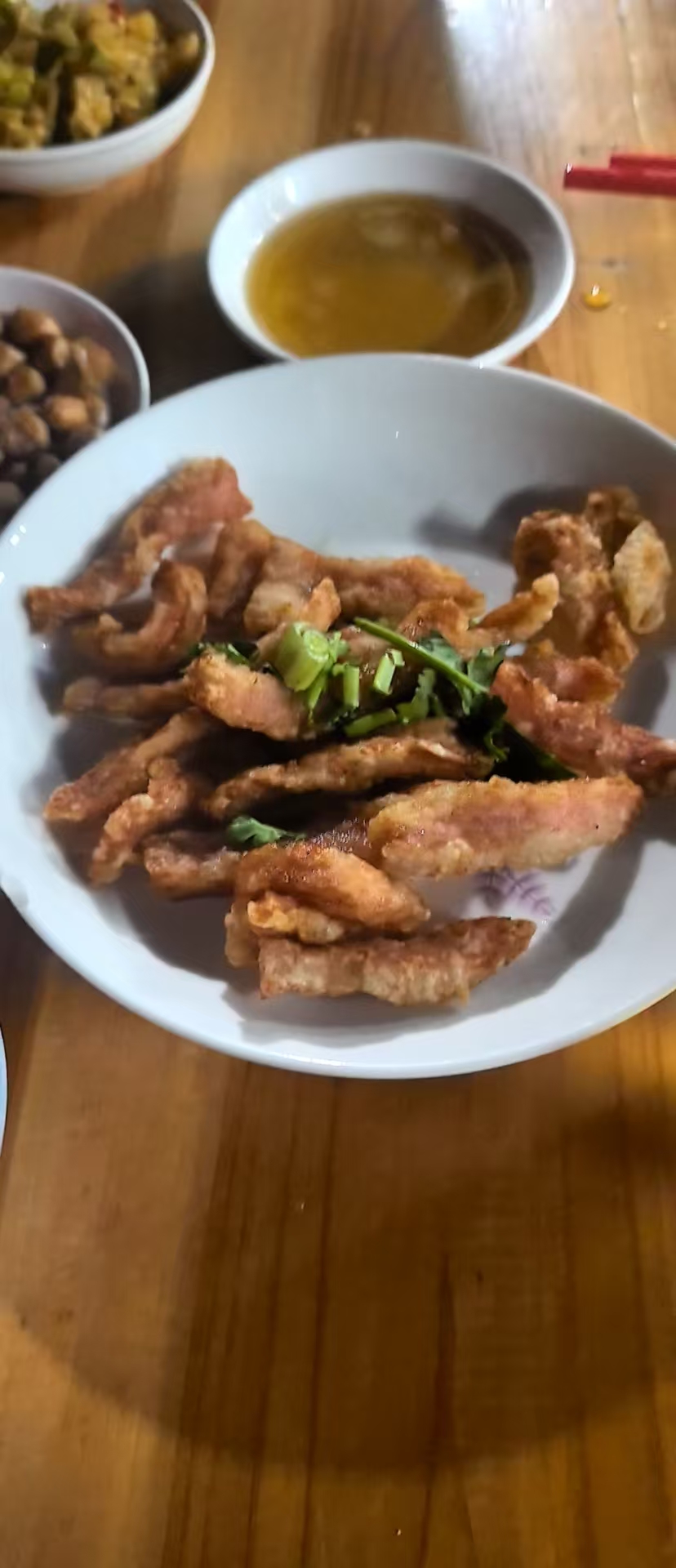 Fried Pork | ["pork","green onions","sauce"] | ["pork:300g","sauce:50g"] | |