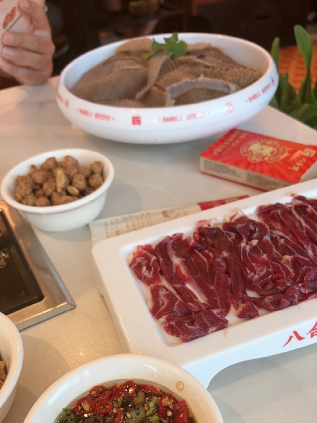 Hot Pot | ["sliced meat","sauce","nuts"] | ["meat:200g","sauce:50g","nuts:30g"] | |