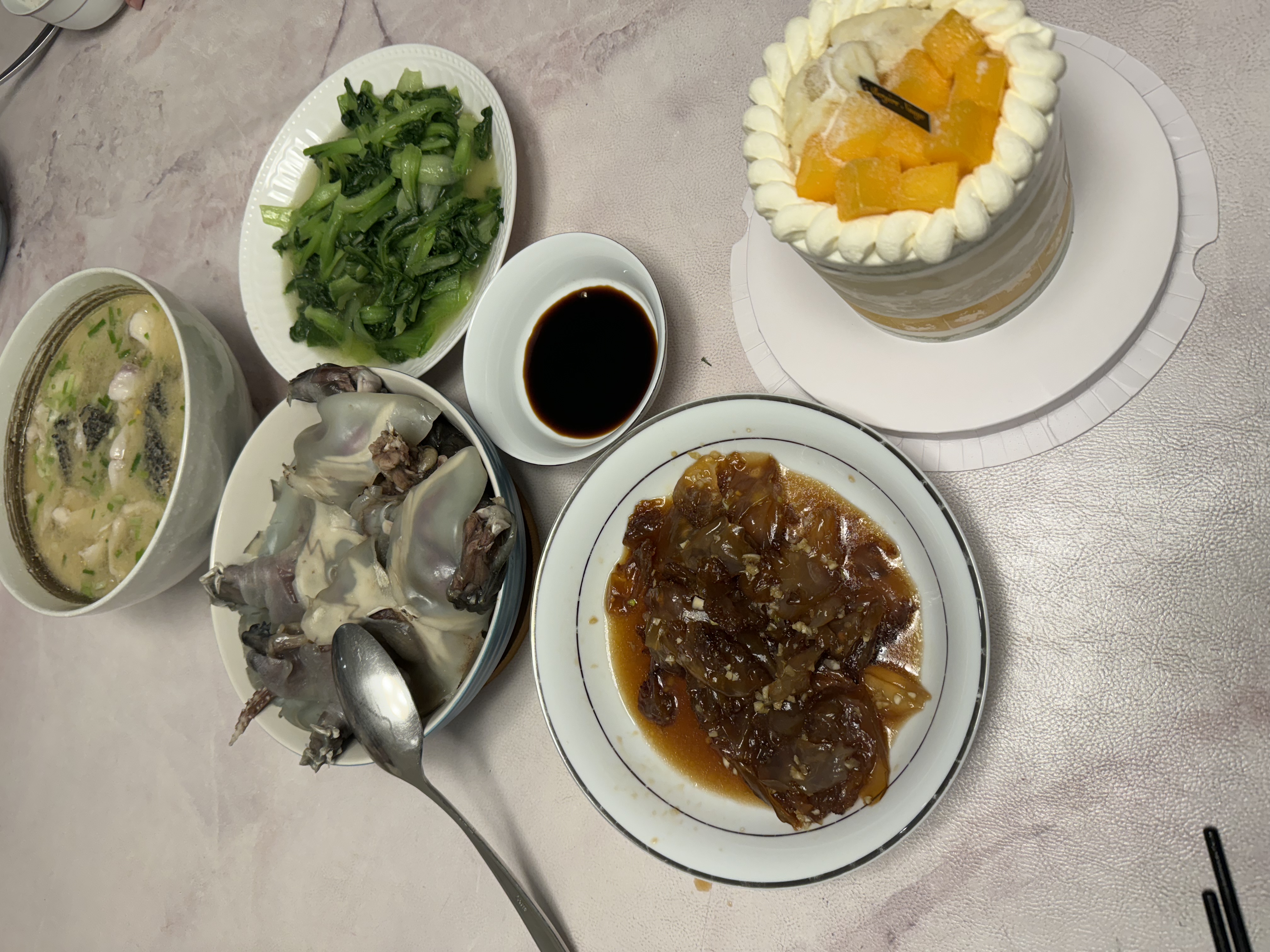 Mixed Asian Meal | ["meat","vegetables","sauce","cake"] | ["meat:200g","vegetables:150g","dessert:100g"] | |