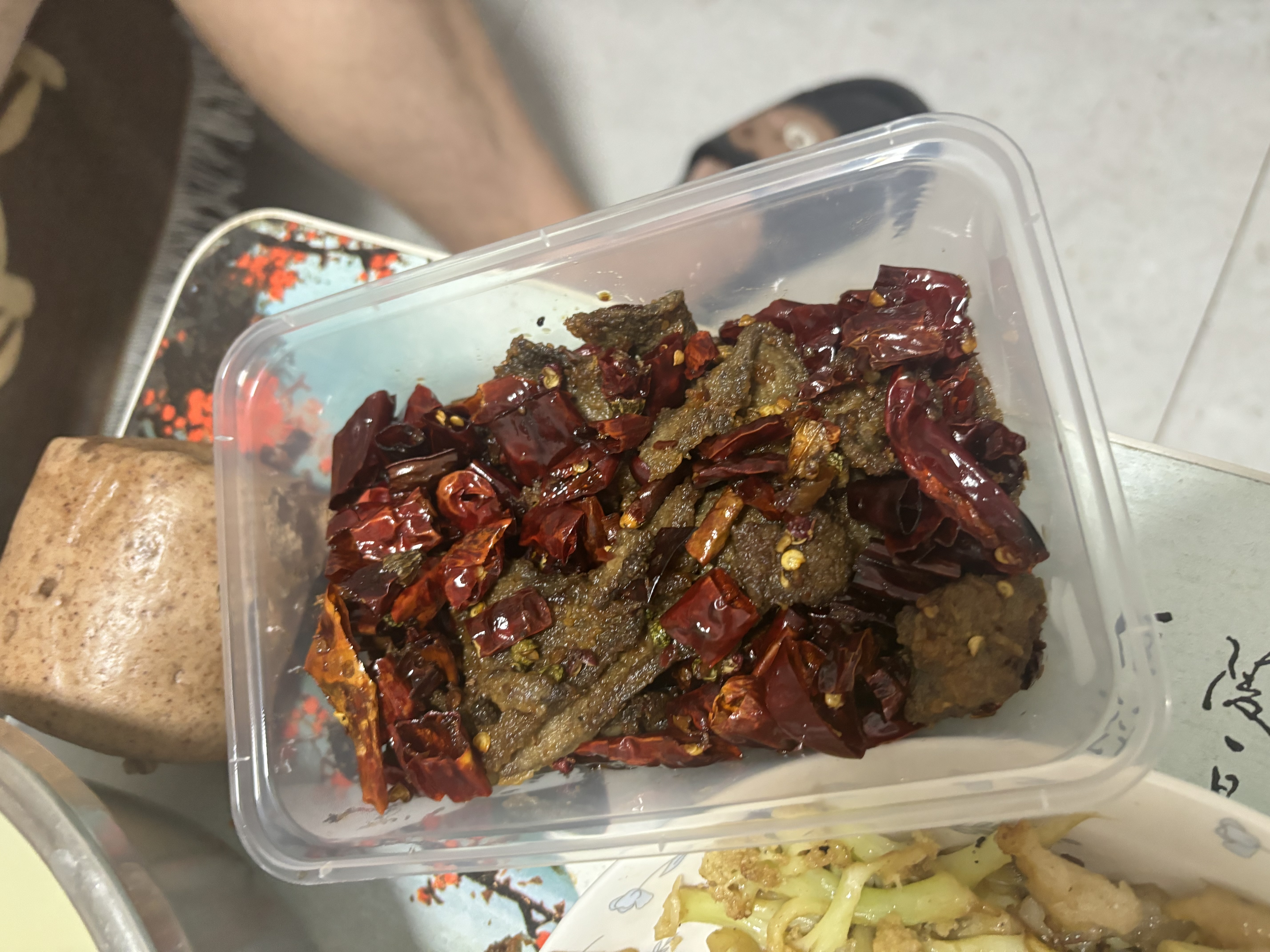 Spicy Dried Meat | ["dried meat","dried red peppers","spices"] | ["meat:200g","dried peppers:50g"] | |
