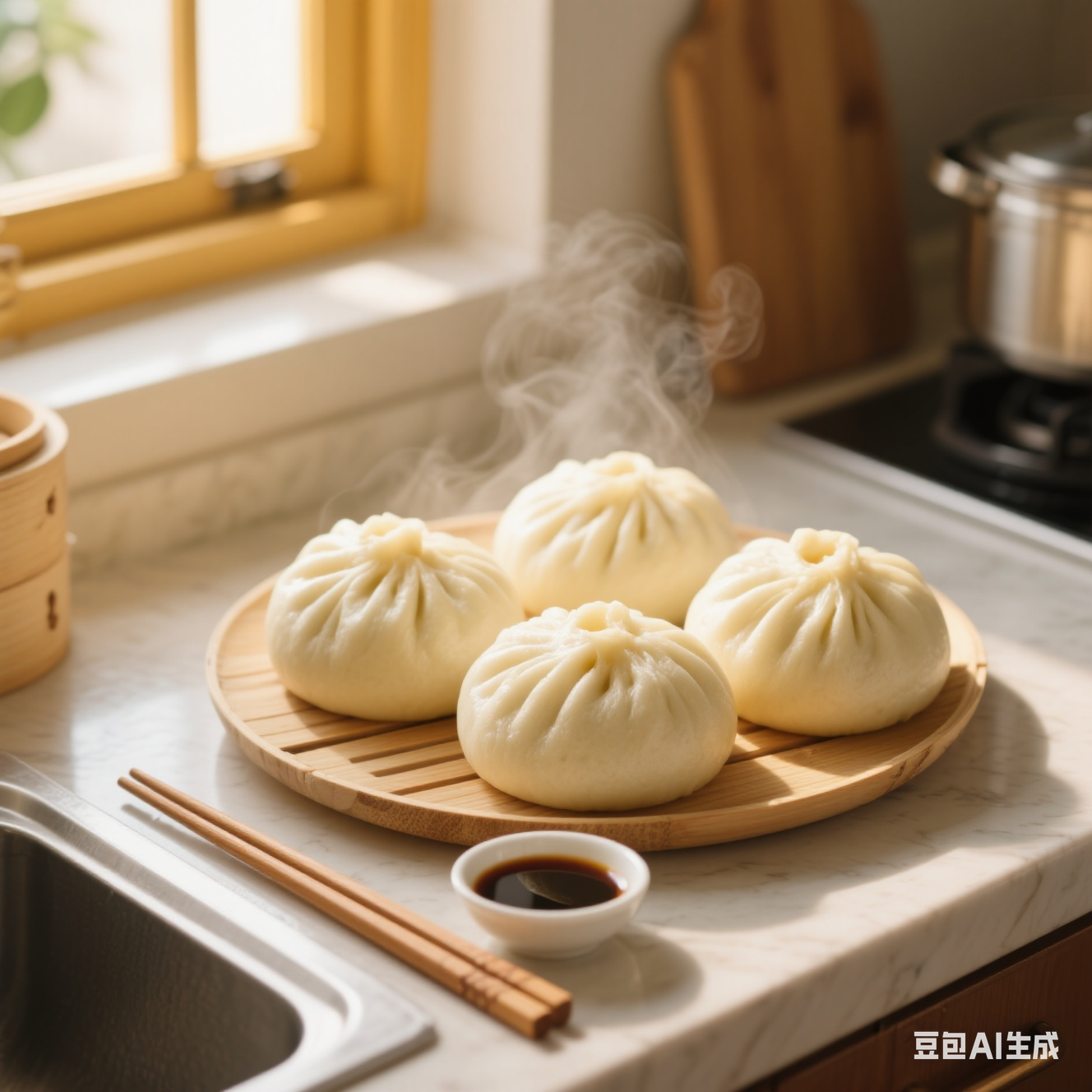 Steamed Buns | ["flour","water","yeast","filling (meat/vegetables)","soy sauce"] | ["buns:300g","soy sauce:20g"] | |