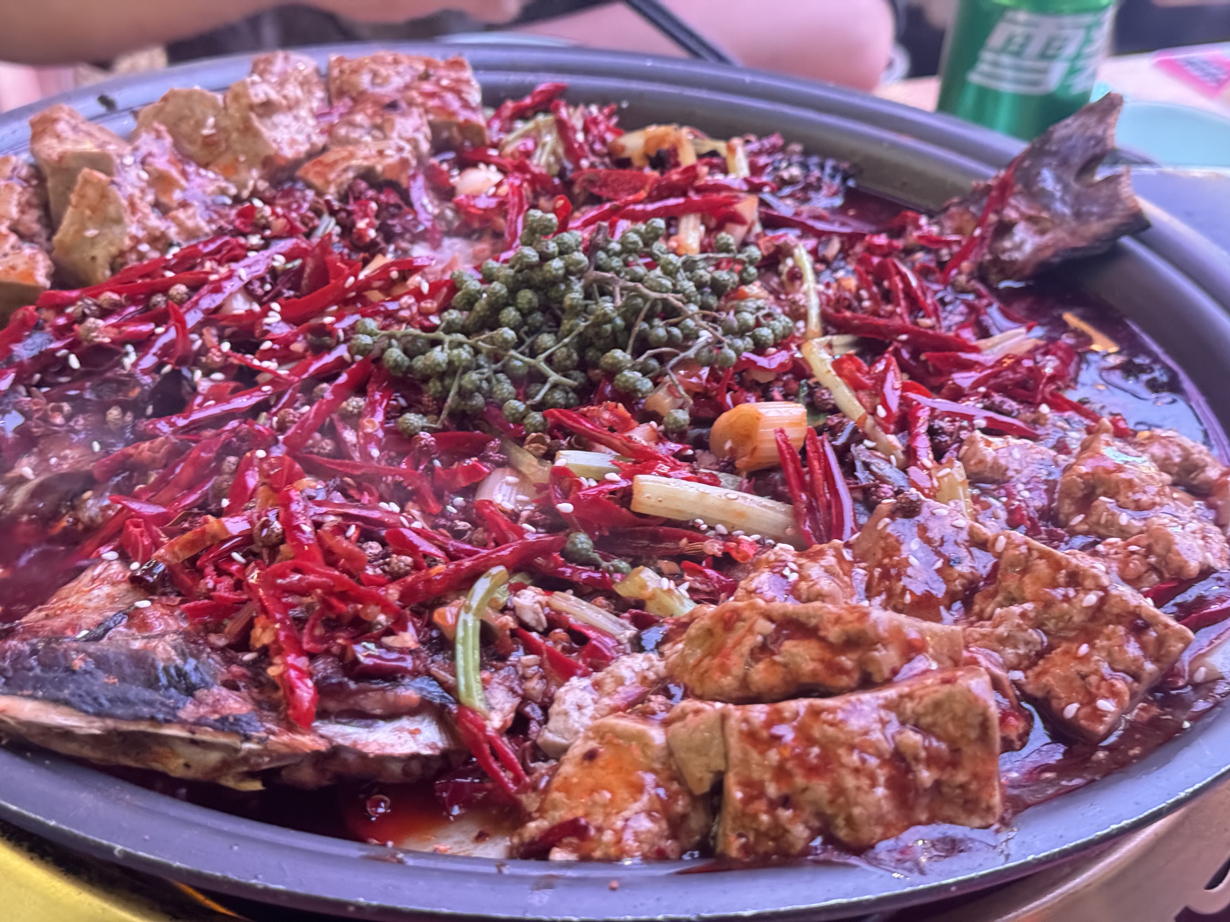 Spicy Fish Hot Pot | ["fish","dried chilies","peppercorns","vegetables"] | ["fish:300g","spices:50g","vegetables:100g"] | |
