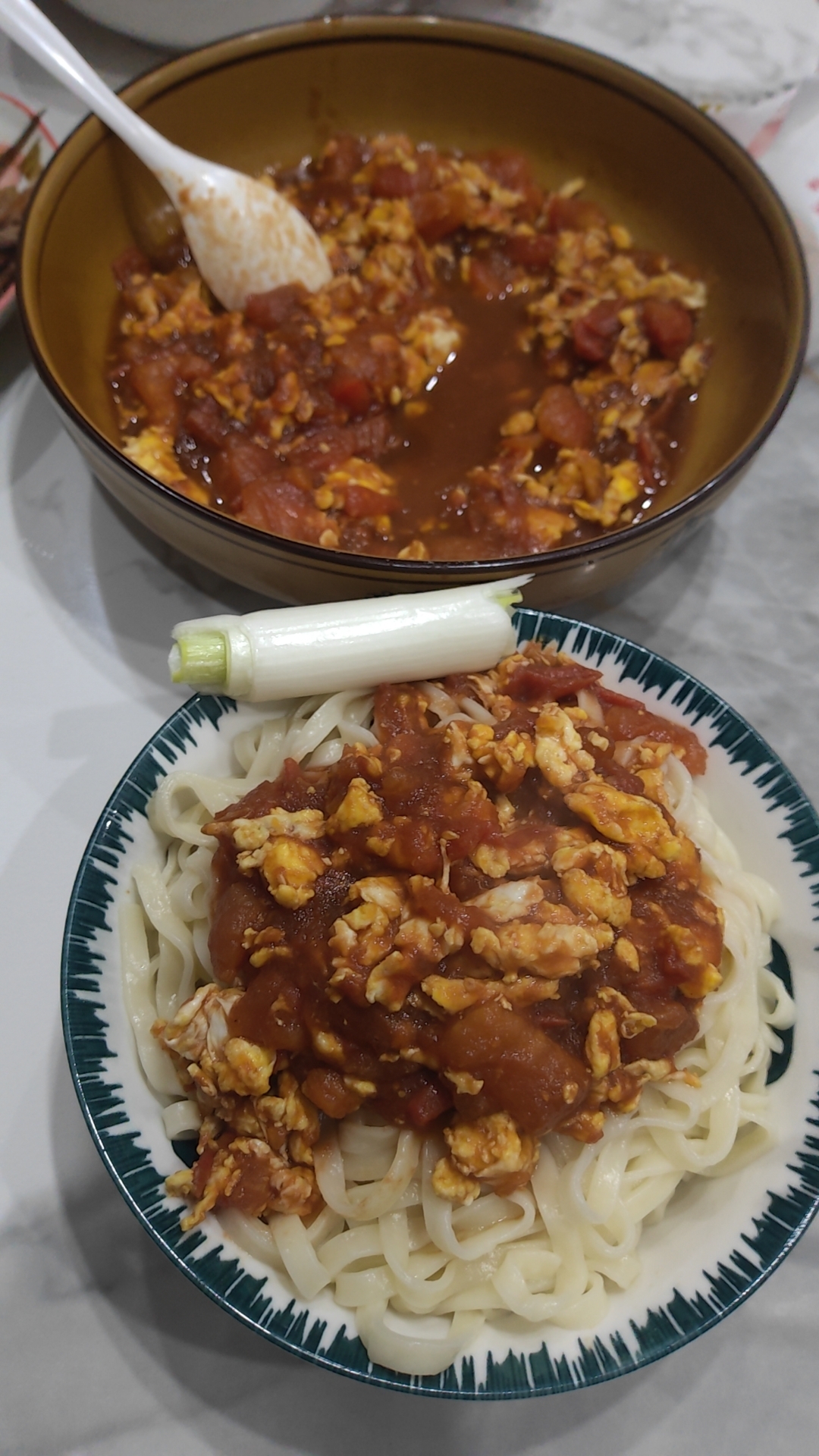 Noodles with Tomato and Egg Sauce | ["noodles","tomatoes","eggs","green onion"] | ["noodles:200g","sauce:150g","green onion:20g"] | |
