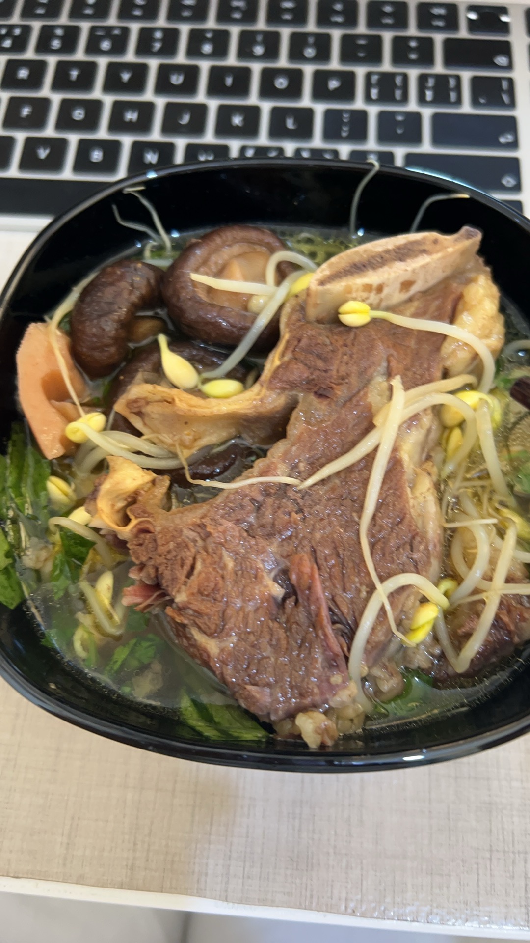 Beef Noodle Soup | ["beef","noodles","bean sprouts","mushrooms","broth"] | ["beef:200g","noodles:150g","vegetables:100g"] | |