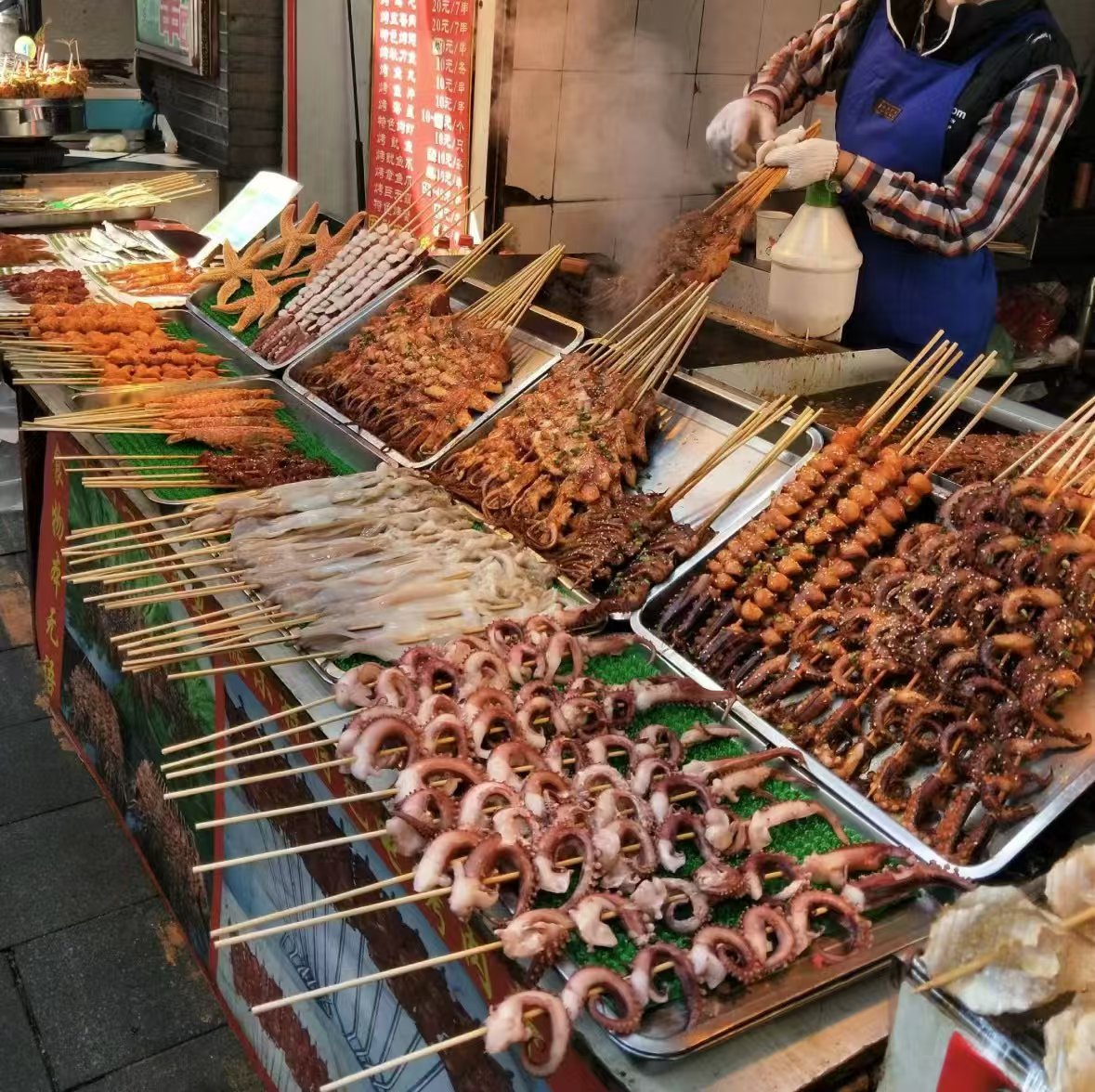 Mixed Skewers | ["chicken","beef","squid","octopus","spices"] | ["meat:300g","seafood:200g"] | |