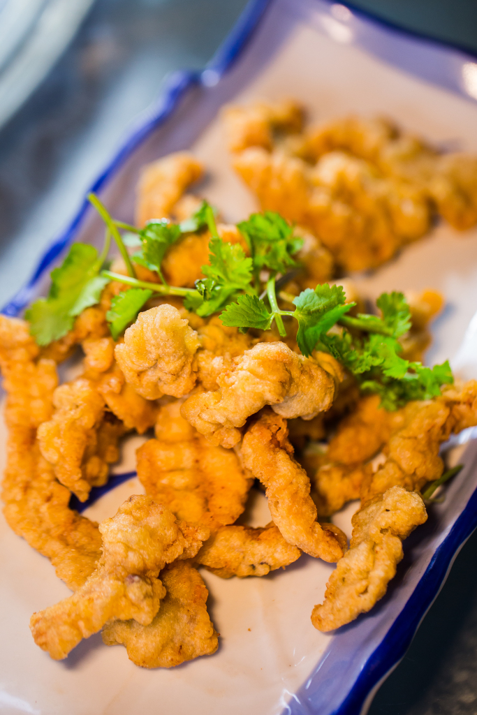 Fried Chicken Strips | ["chicken","flour","spices","oil"] | ["chicken:200g","breading:50g"] | |