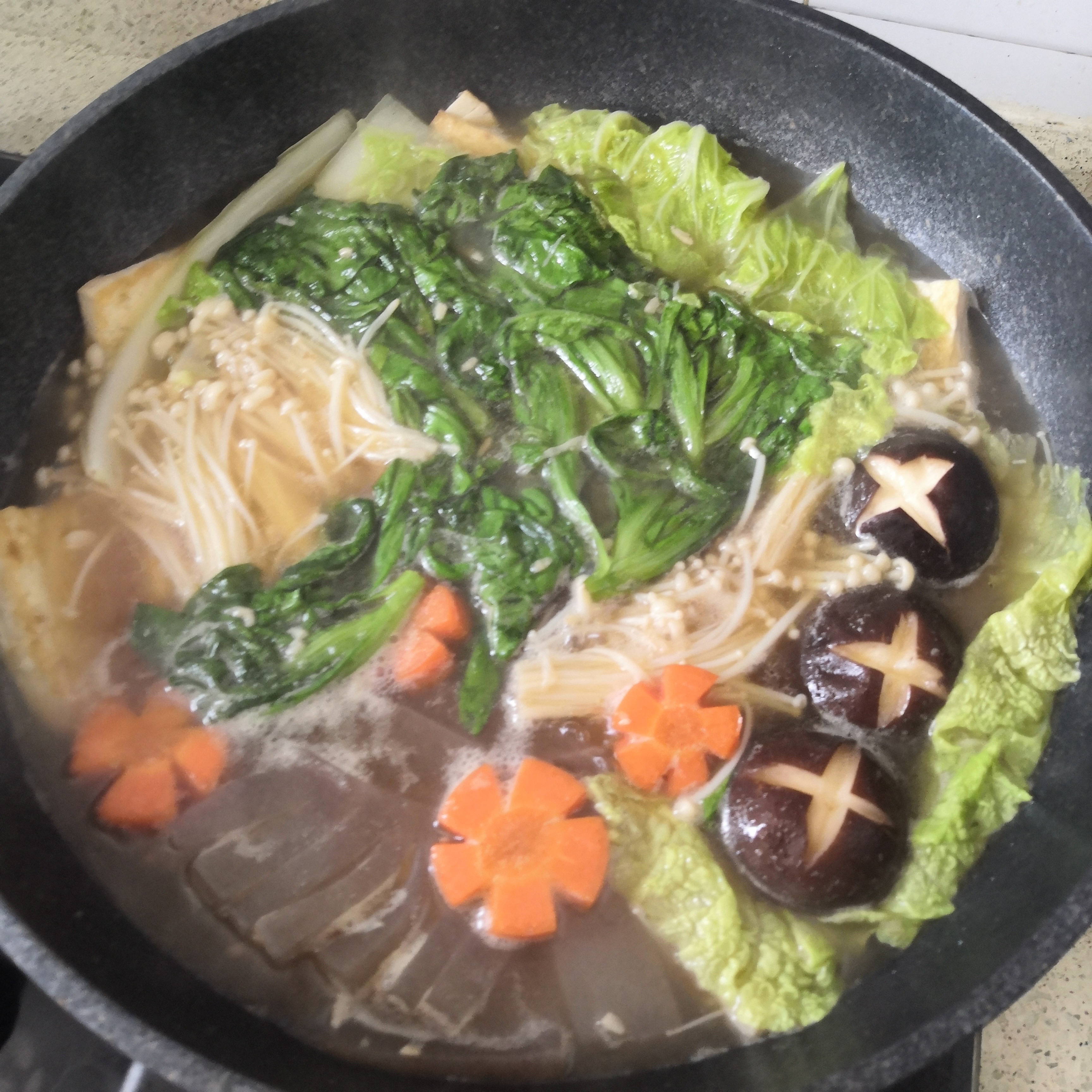 Vegetable Hot Pot | ["tofu","spinach","carrots","mushrooms","broth"] | ["tofu:150g","spinach:100g","carrots:50g","mushrooms:100g","broth:200ml"] | |