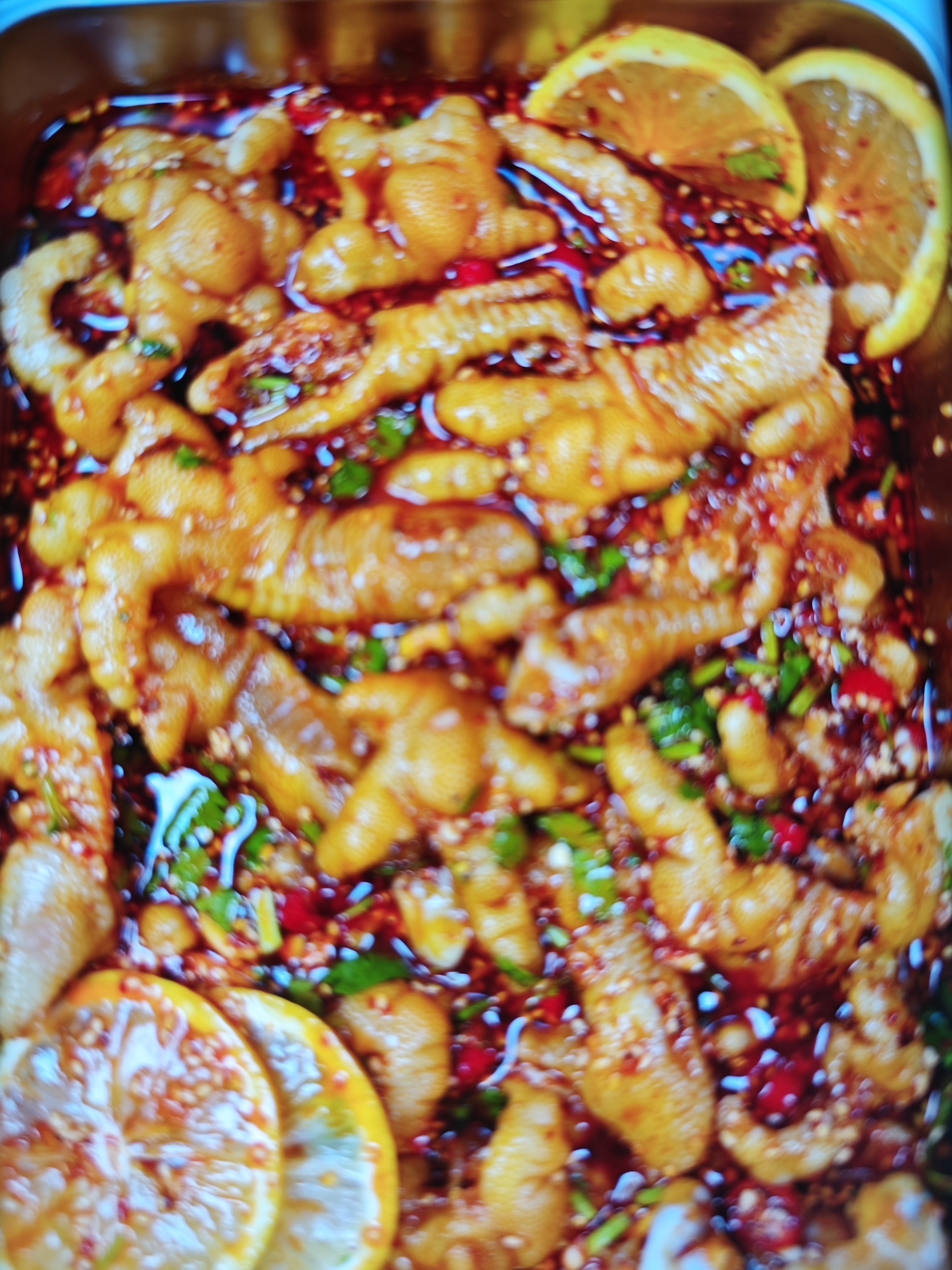 Spicy Chicken Feet | ["chicken feet","spicy sauce","green onions","lemon"] | ["chicken feet:300g","sauce:50g"] | |