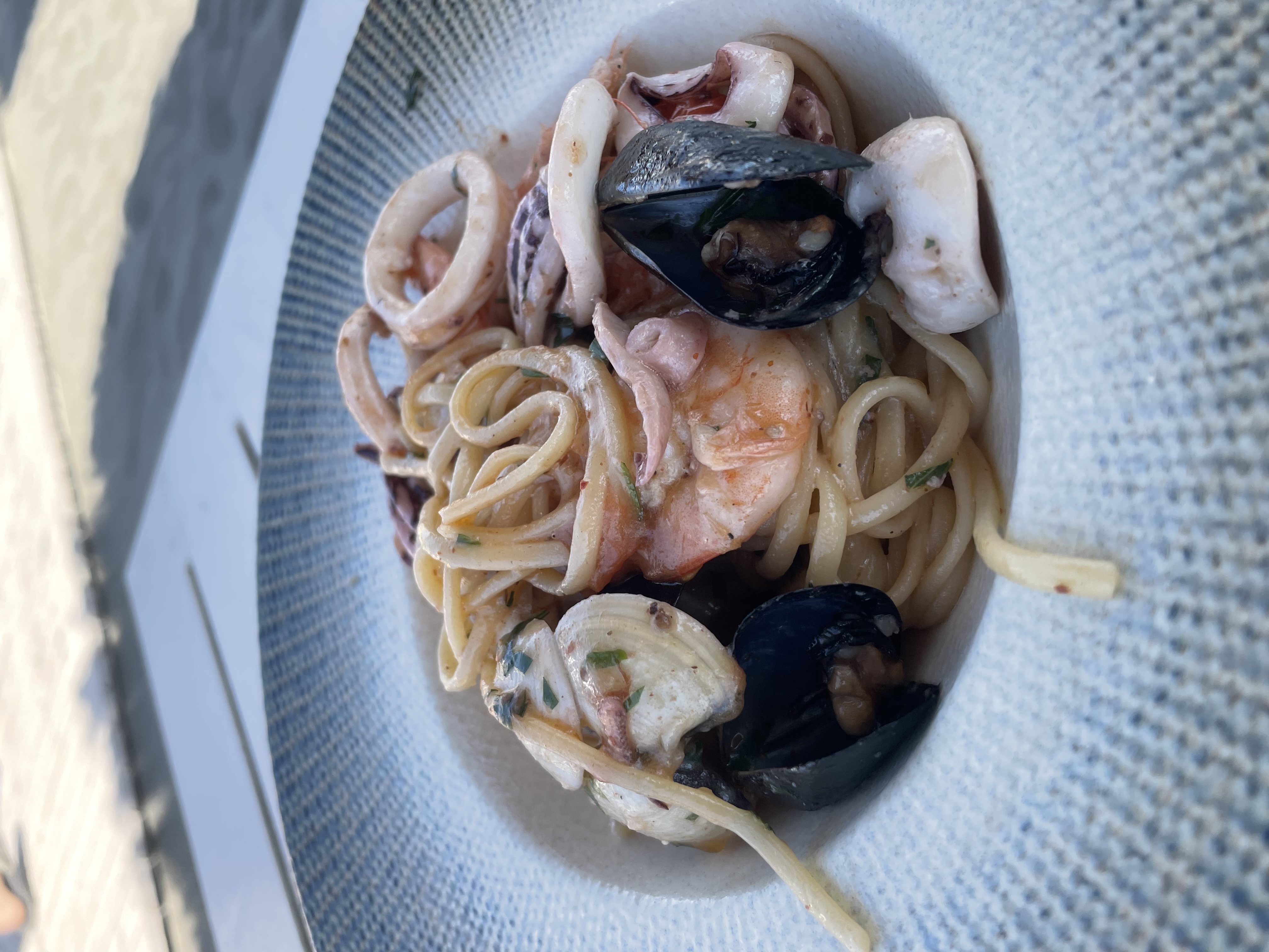 Seafood Pasta | ["pasta","shrimp","squid","mussels","olive oil","garlic","herbs"] | ["pasta:200g","shrimp:100g","squid:100g","mussels:100g"] | |