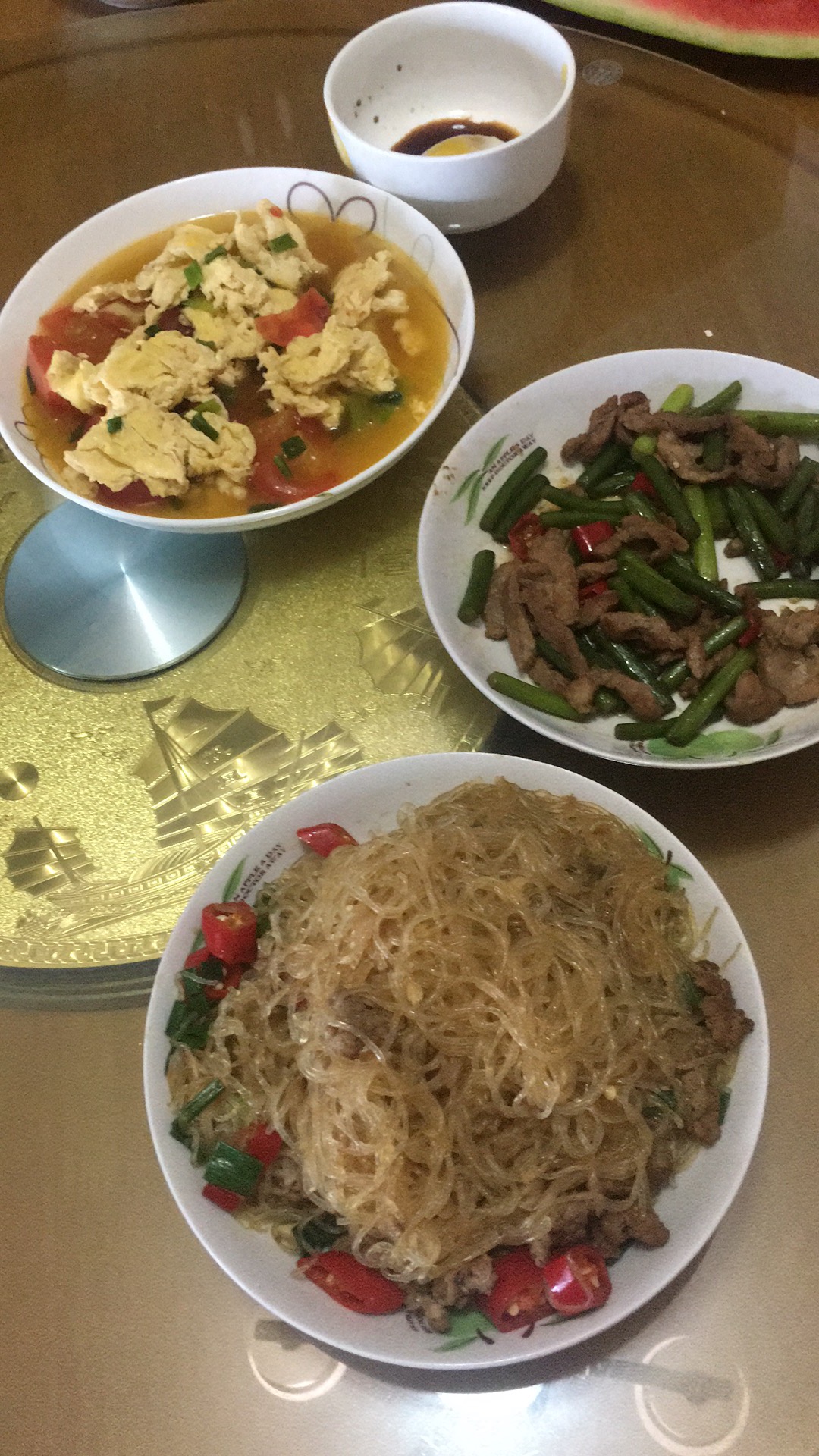 Stir-fried noodles with vegetables and meat | ["noodles","vegetables","meat","eggs","sauce"] | ["noodles:300g","vegetables:200g","meat:100g"] | |