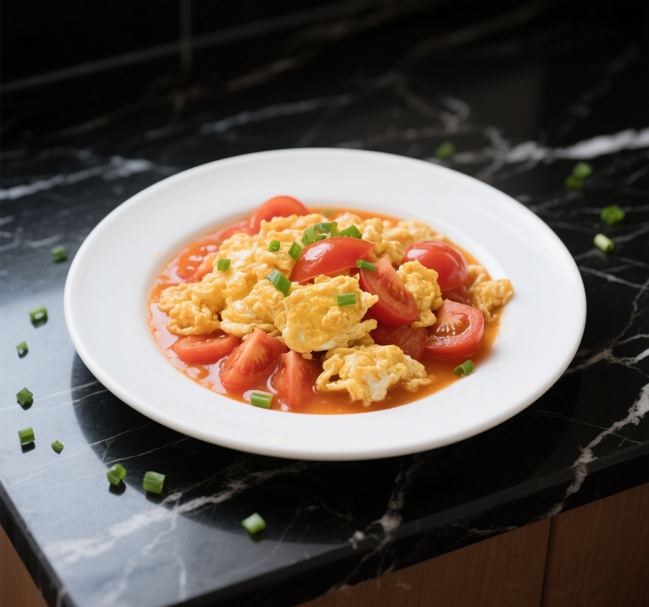 Tomato Scrambled Eggs | ["eggs","tomatoes","oil","seasoning"] | ["eggs:200g","tomatoes:150g"] | |