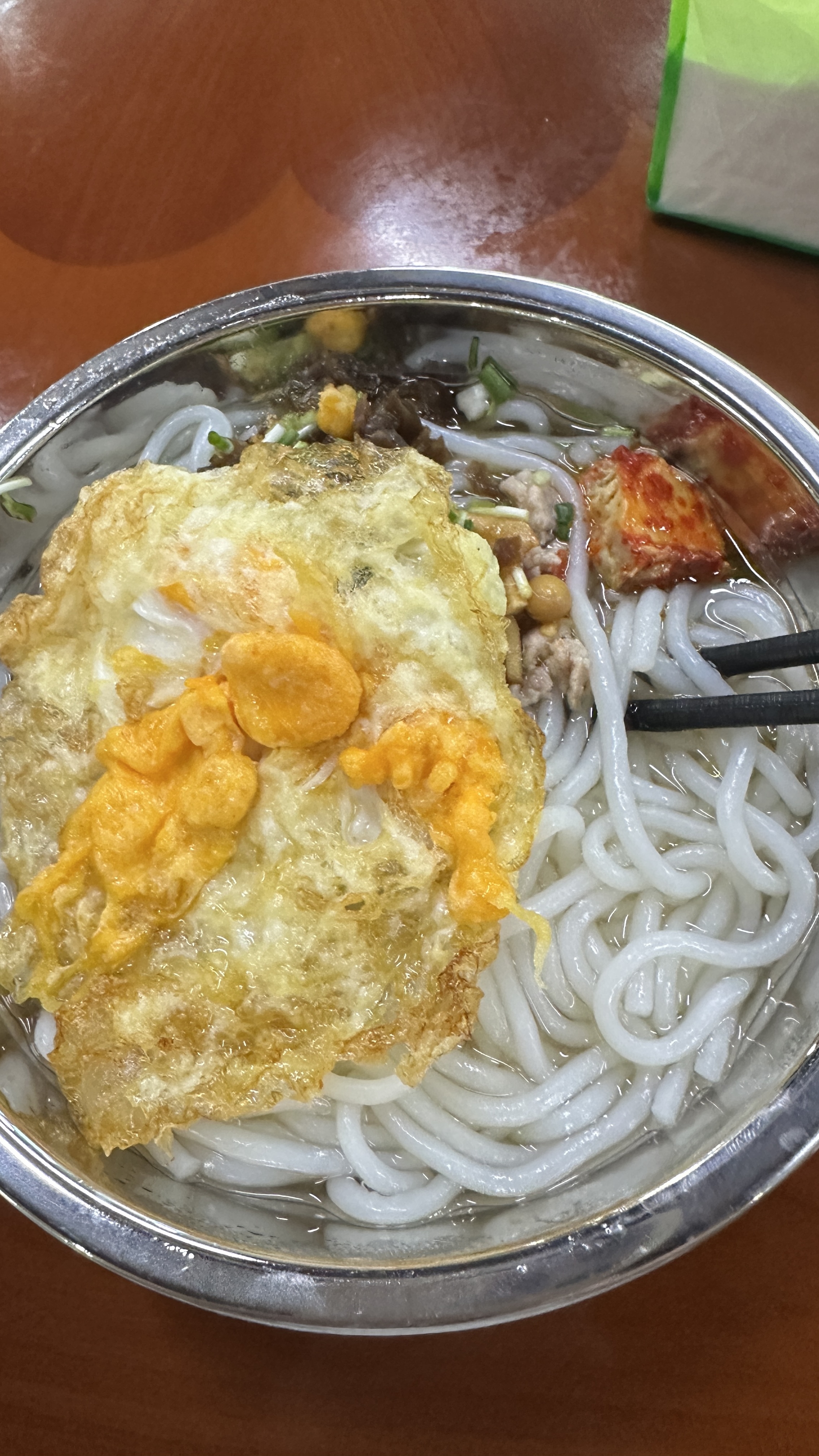 Noodle Bowl with Egg | ["noodles","egg","meat","vegetables"] | ["noodles:300g","egg:100g","toppings:50g"] | |
