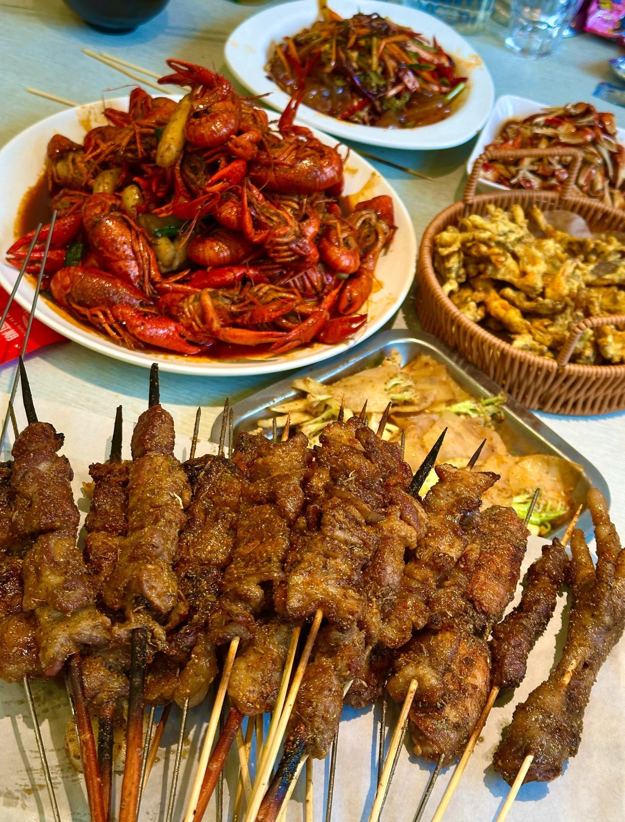Crawfish and Skewered Meat | ["crawfish","beef","spices","sauce"] | ["crawfish:300g","skewered meat:200g"] | |
