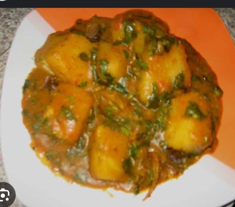 Vegetable Stew with Potatoes | ["potatoes","spinach","tomatoes","onions","spices"] | ["potatoes:300g","vegetables:100g"] |
