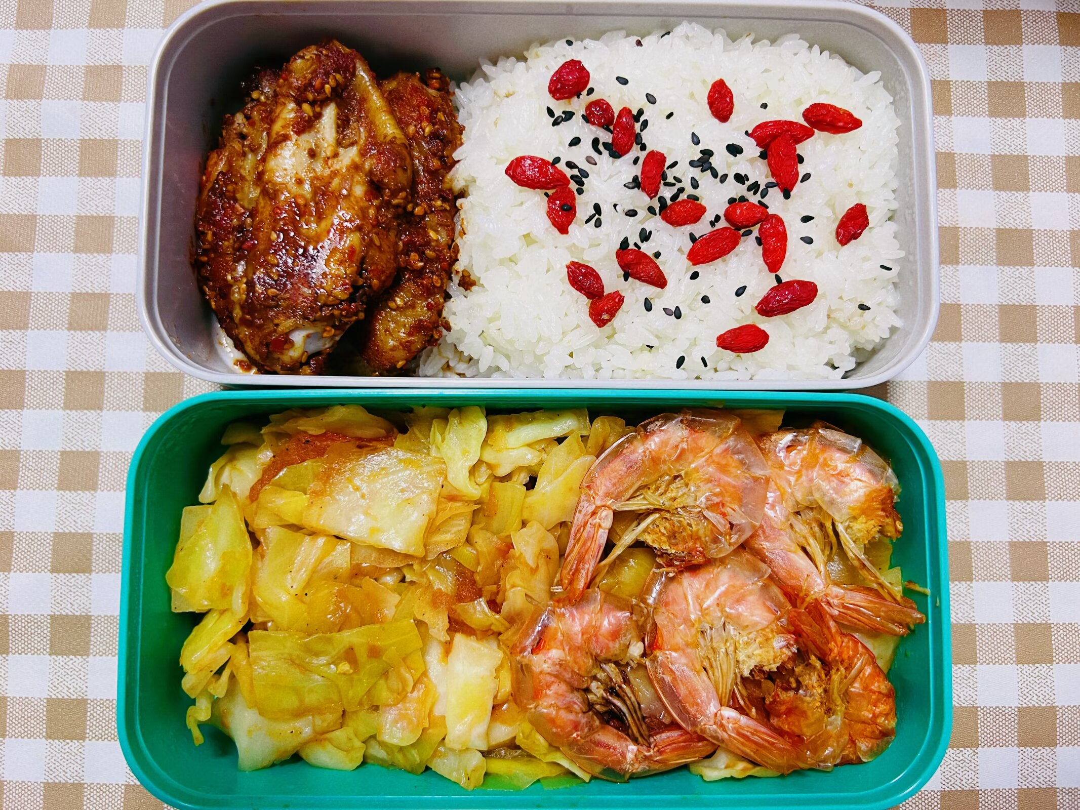Mixed Seafood and Chicken Lunchbox | ["chicken","rice","cabbage","shrimp"] | ["chicken:150g","rice:200g","cabbage:100g","shrimp:100g"] | |