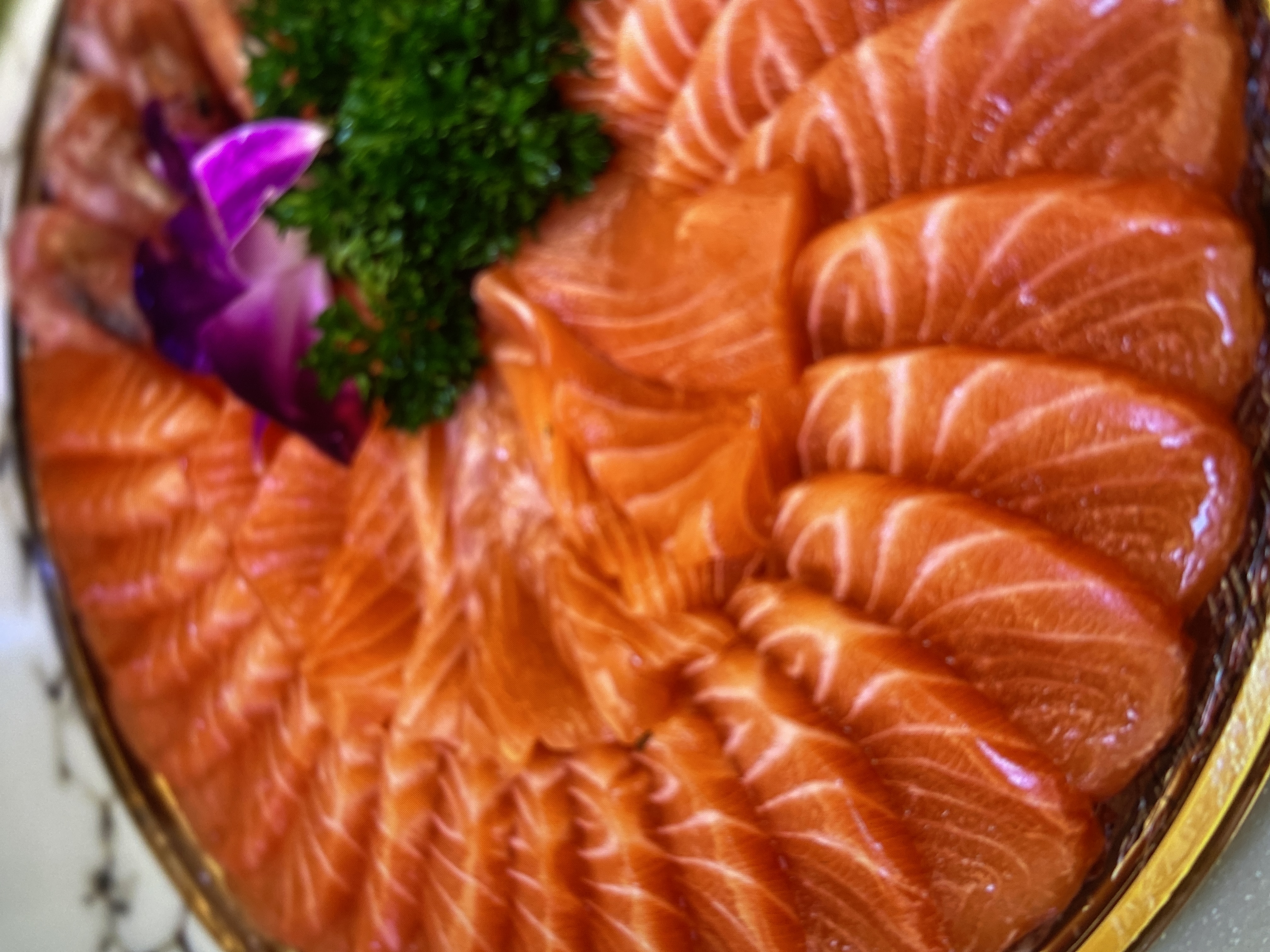 Sashimi | ["salmon","parsley","edible flower"] | ["salmon:300g"] | |