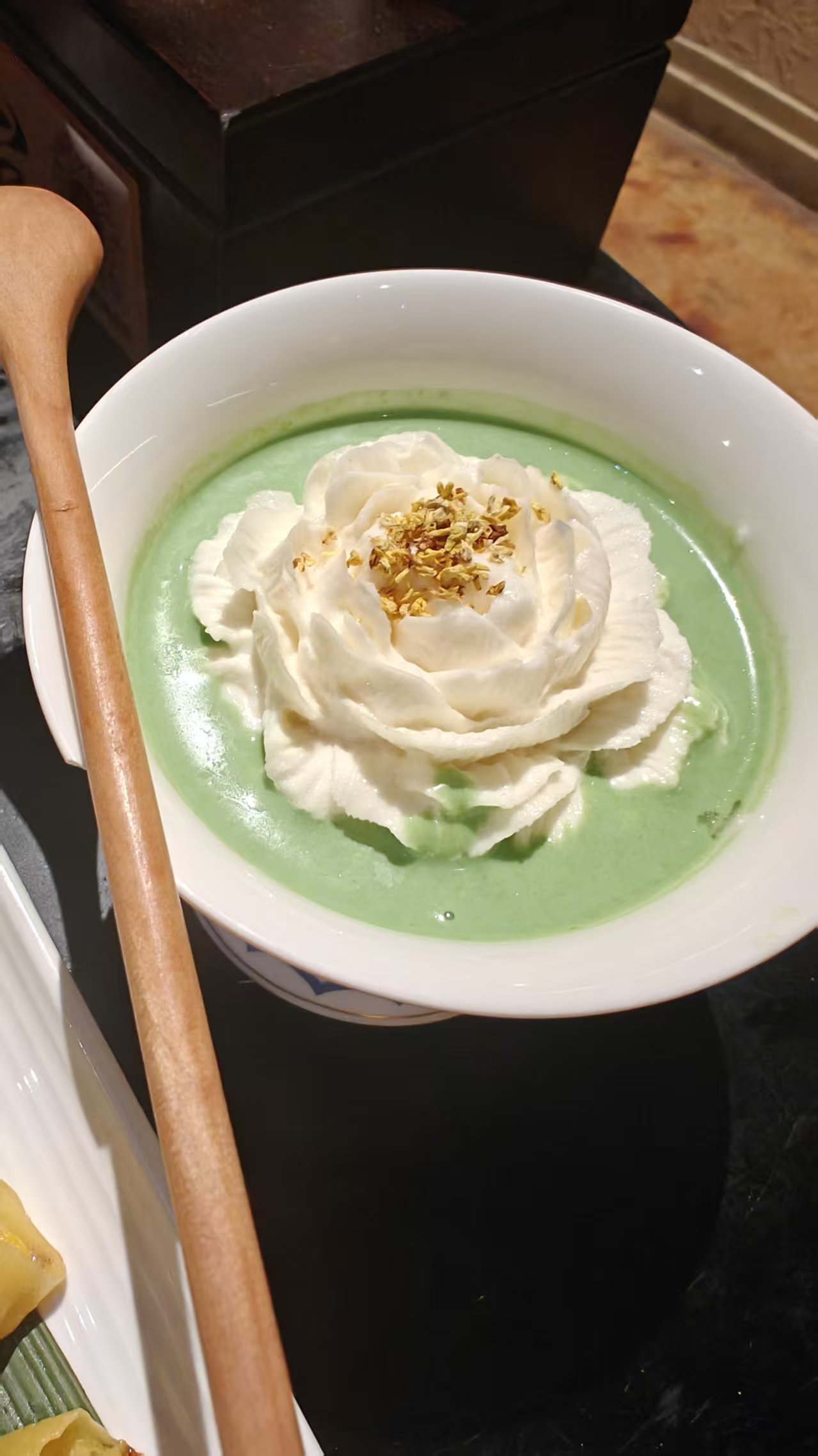 Creamy Green Dessert | ["cream","sugar","green food coloring"] | ["cream:150g","sugar:50g"] | |