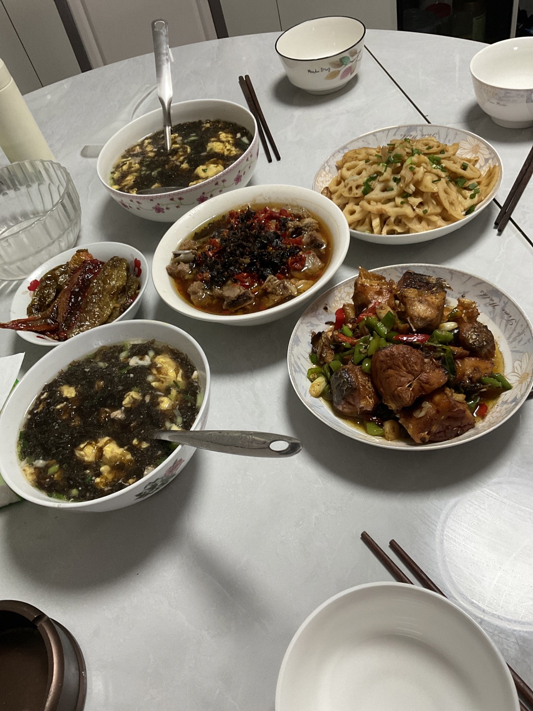 Mixed Chinese Dishes | ["green beans","pork","chicken feet","shrimp","rice"] | ["vegetables:300g","meat:200g","rice:150g"] | |