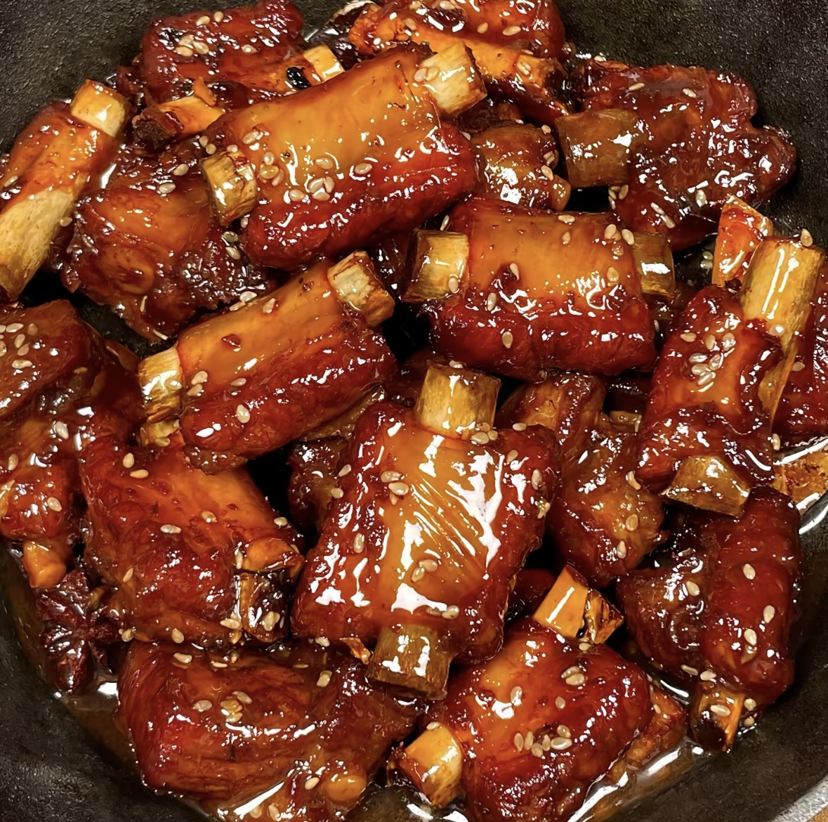 Sweet Glazed Ribs | ["pork ribs","soy sauce","sugar","sesame seeds"] | ["ribs:500g"] | |