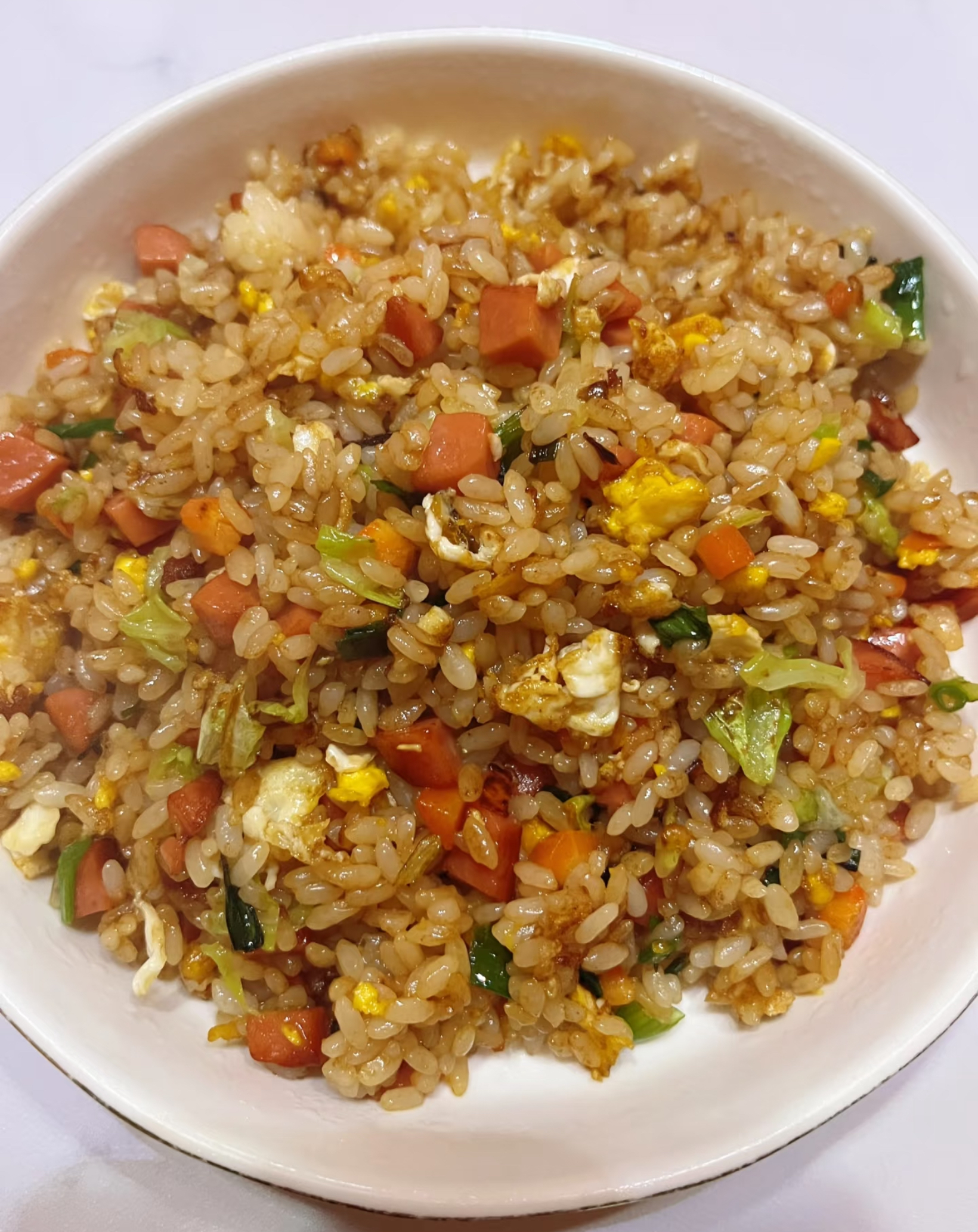 Fried Rice | ["rice","egg","green onions","cabbage","spices"] | ["rice:250g","egg:100g","vegetables:50g"] | |