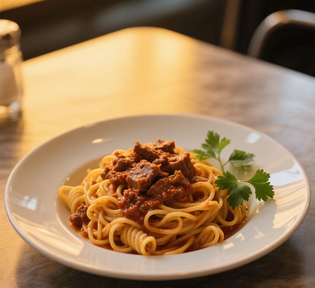Spaghetti Bolognese | ["spaghetti","ground beef","tomato sauce","onion","garlic"] | ["pasta:200g","meat sauce:150g"] | |