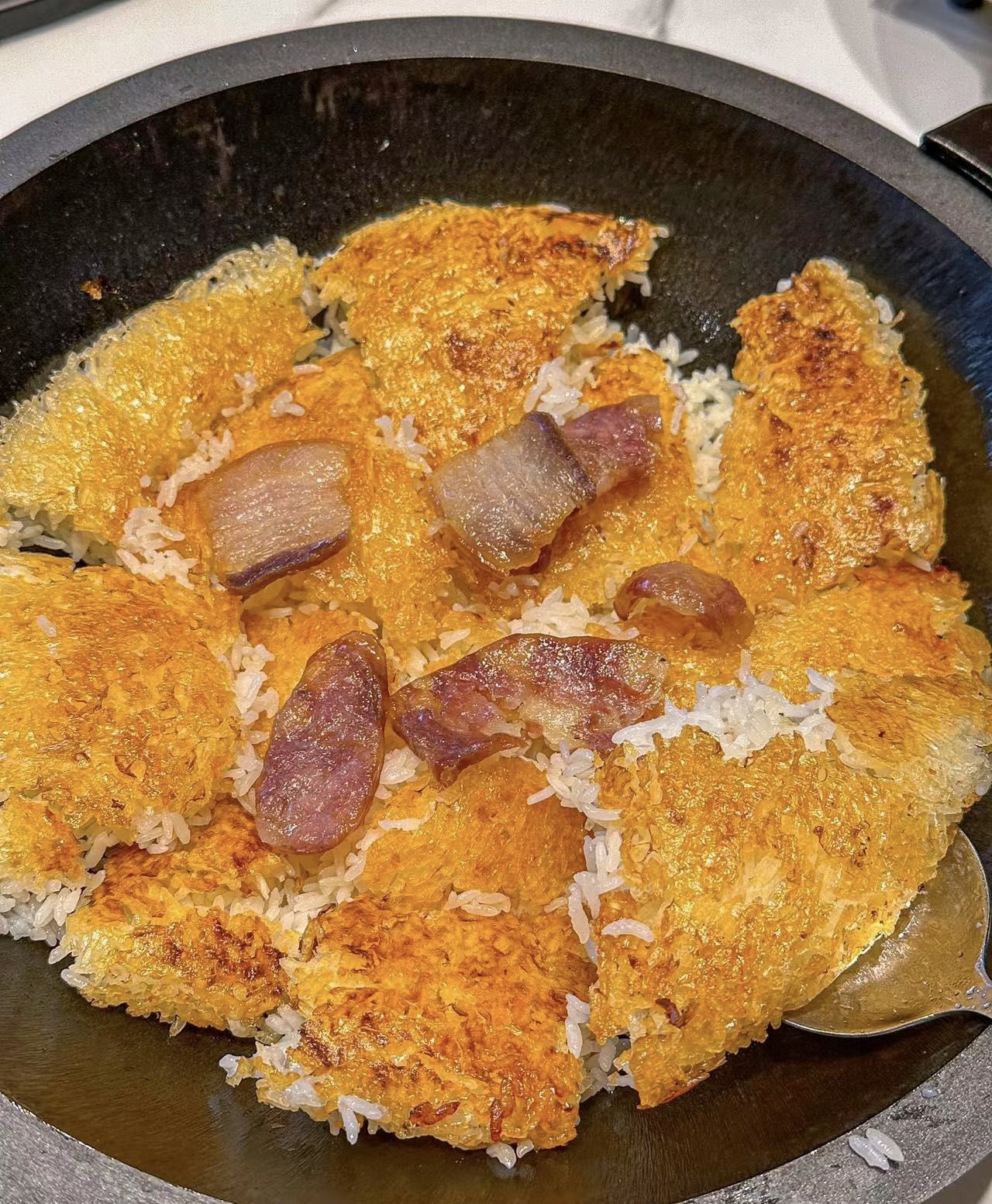 Crispy Rice with Pork | ["rice","pork"] | ["rice:300g","pork:100g"] | |