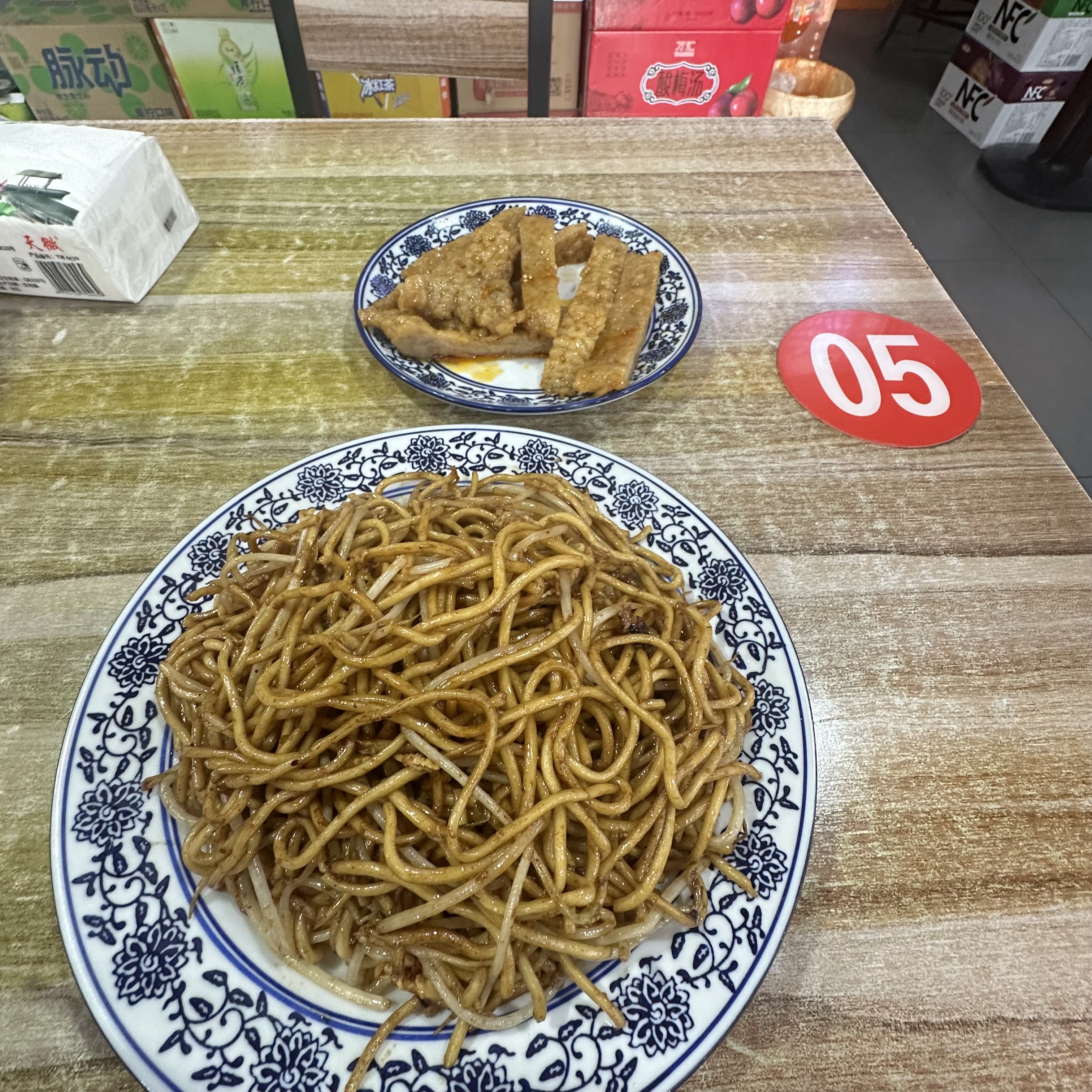 Fried Noodles with Fried Chicken | ["noodles","fried chicken","soy sauce","vegetables"] | ["noodles:400g","fried chicken:200g"] | |