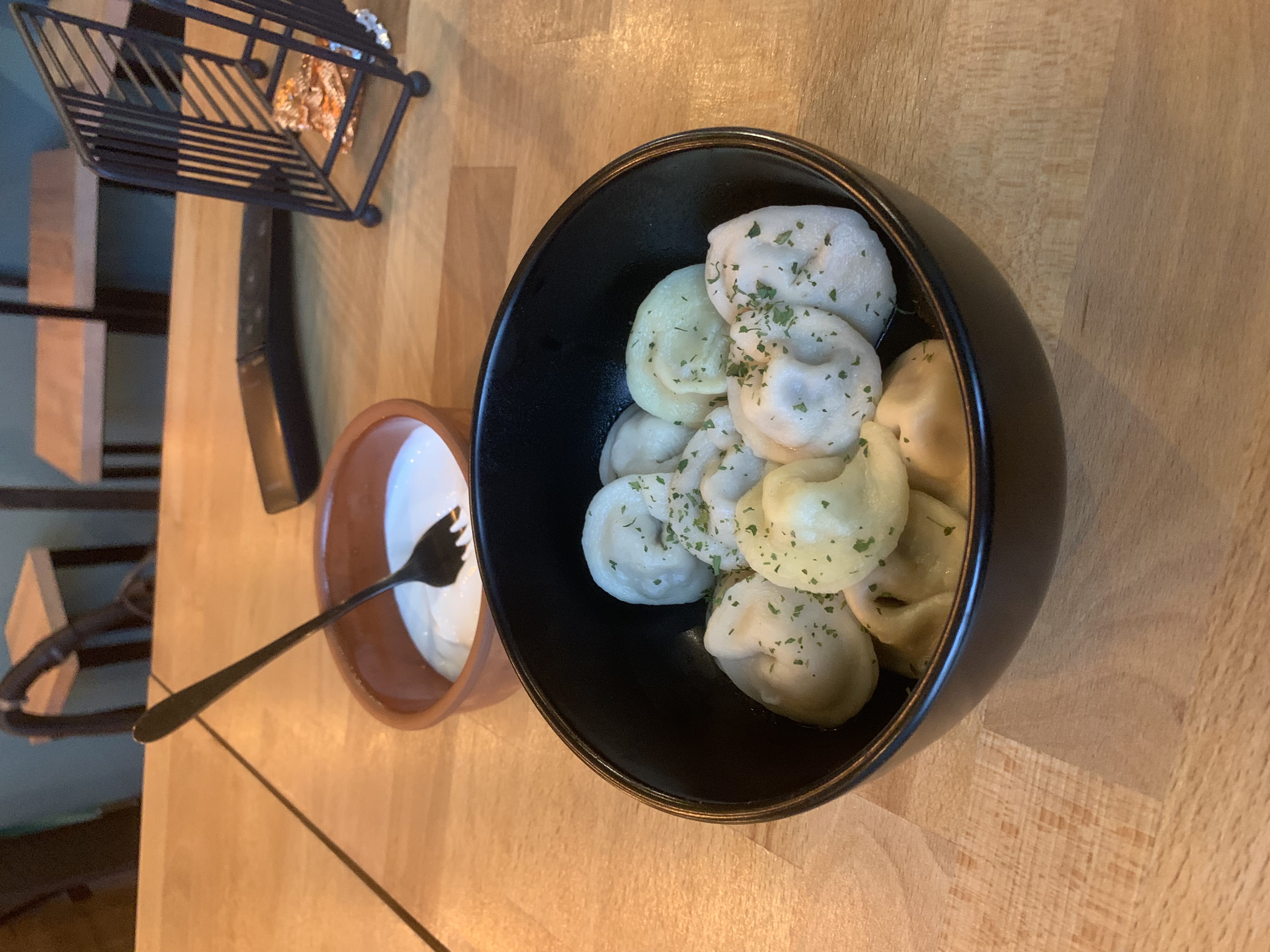 Dumplings | ["dumplings","sour cream","herbs"] | ["dumplings:250g","sour cream:50g"] | |