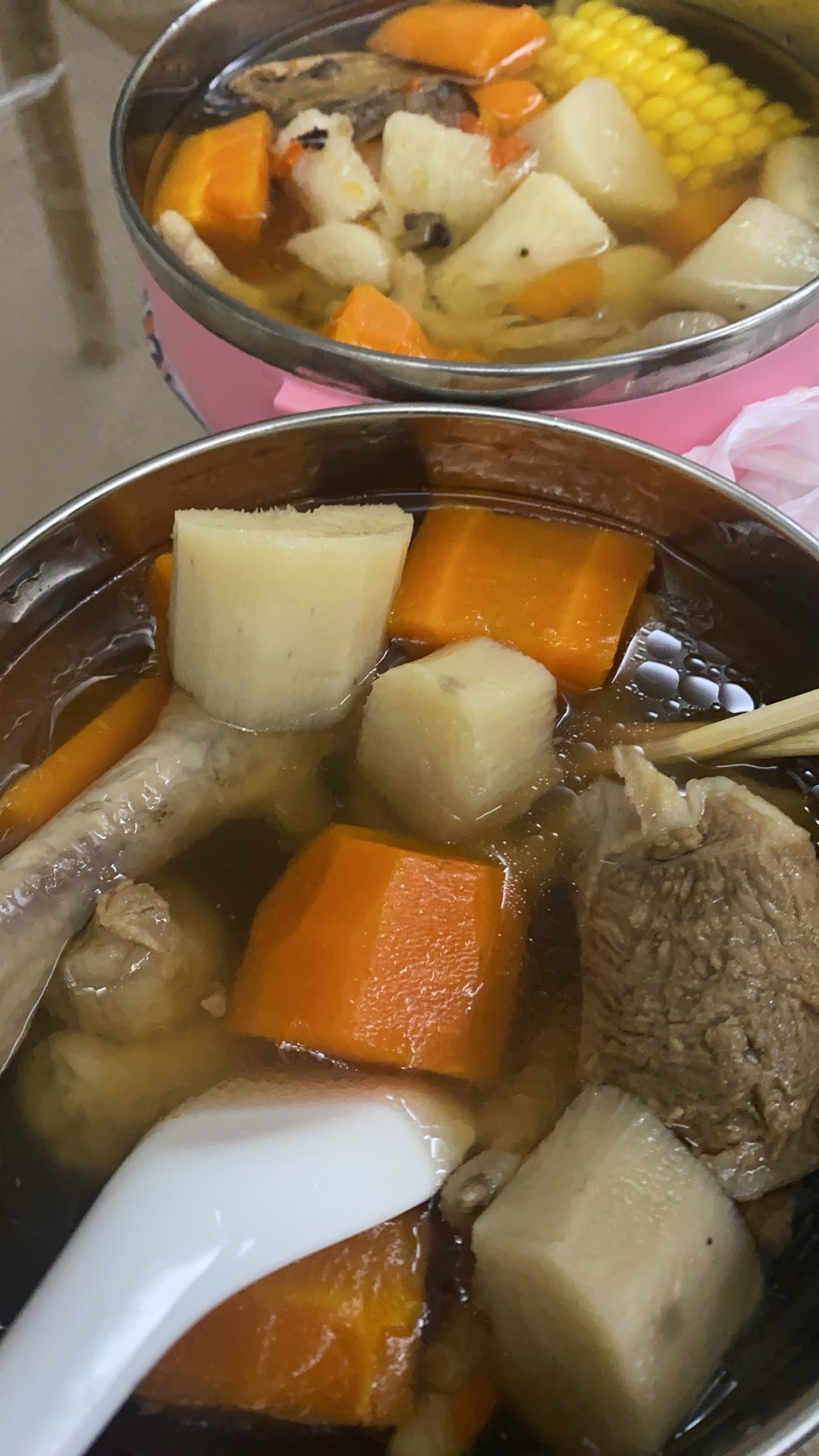 Meat and Vegetable Soup | ["meat","carrots","potatoes","corn"] | ["meat:200g","carrots:100g","potatoes:100g","corn:50g"] | |