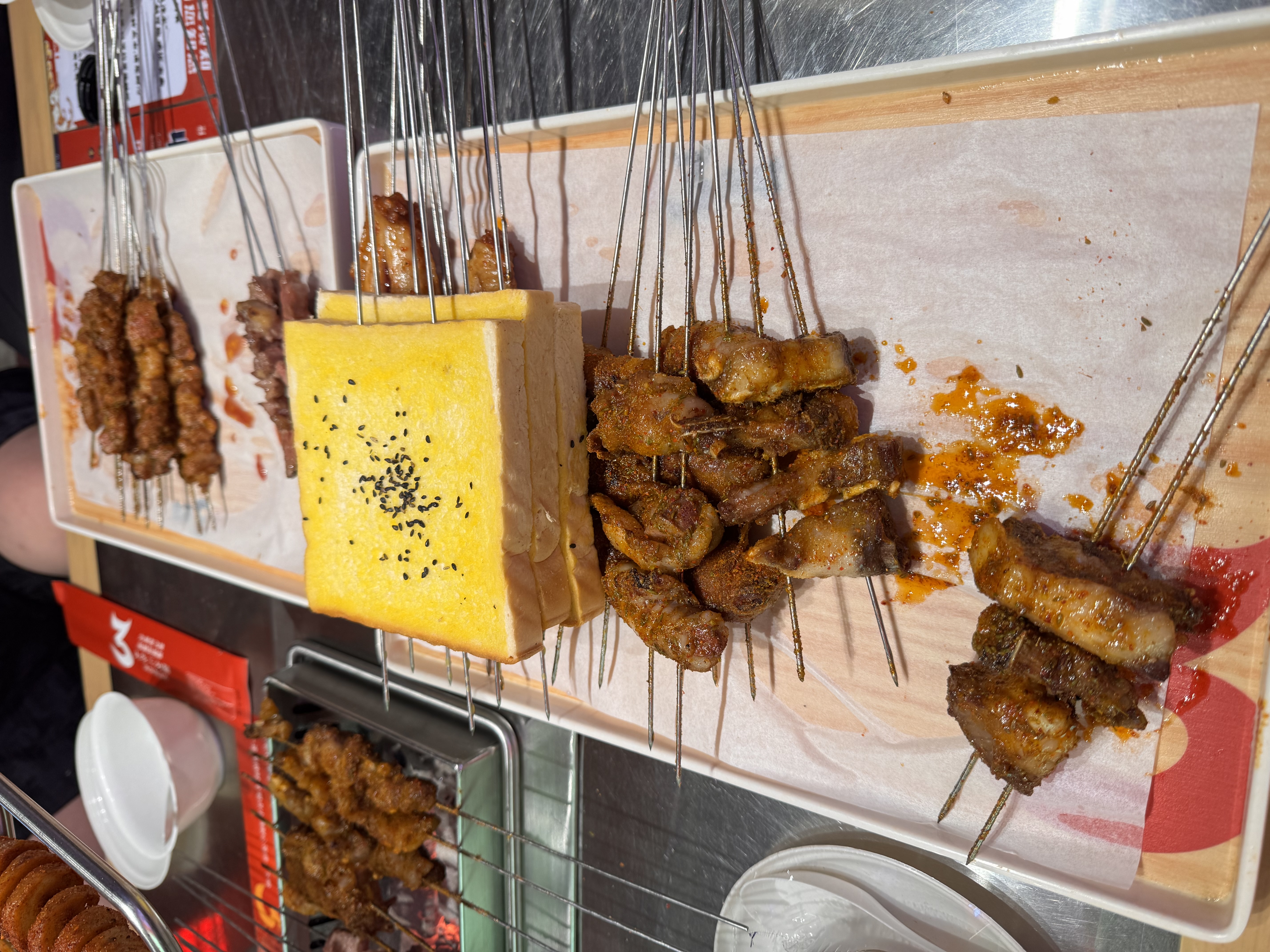Skewered Meat Platter | ["various meats","bread"] | ["meat:500g","bread:200g"] | |
