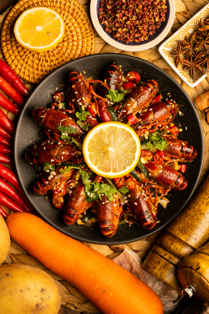 Spicy Crawfish | ["crawfish","lemon","chili peppers","cilantro","garlic"] | ["crawfish:300g","vegetables:50g"] | |