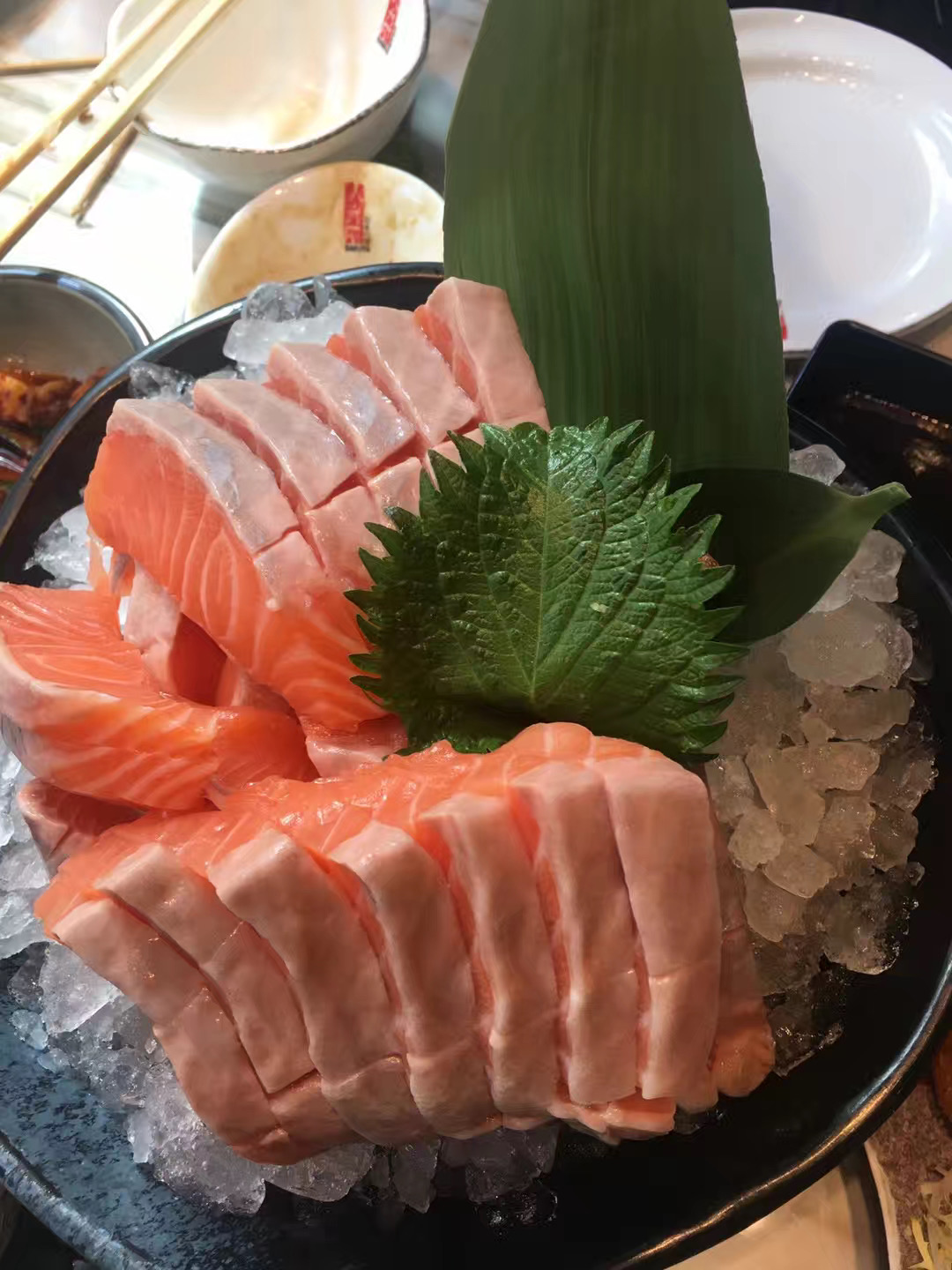 Salmon Sashimi | ["salmon","shiso leaf","ice"] | ["salmon:200g"] | |