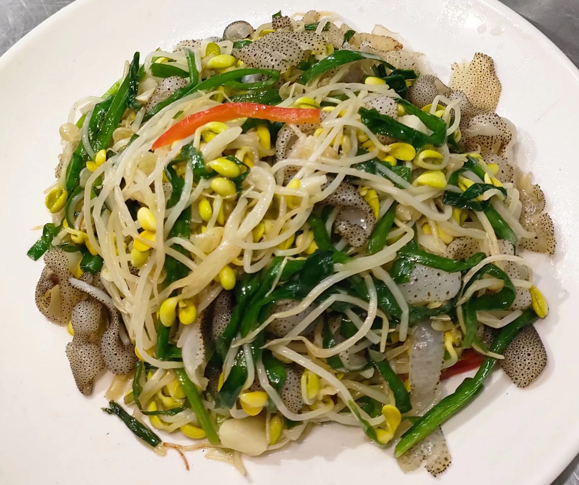 Mixed Seafood and Vegetable Dish | ["noodles","shrimp","vegetables","eggs","oysters"] | ["noodles:200g","vegetables:150g","eggs:100g","seafood:100g"] | |