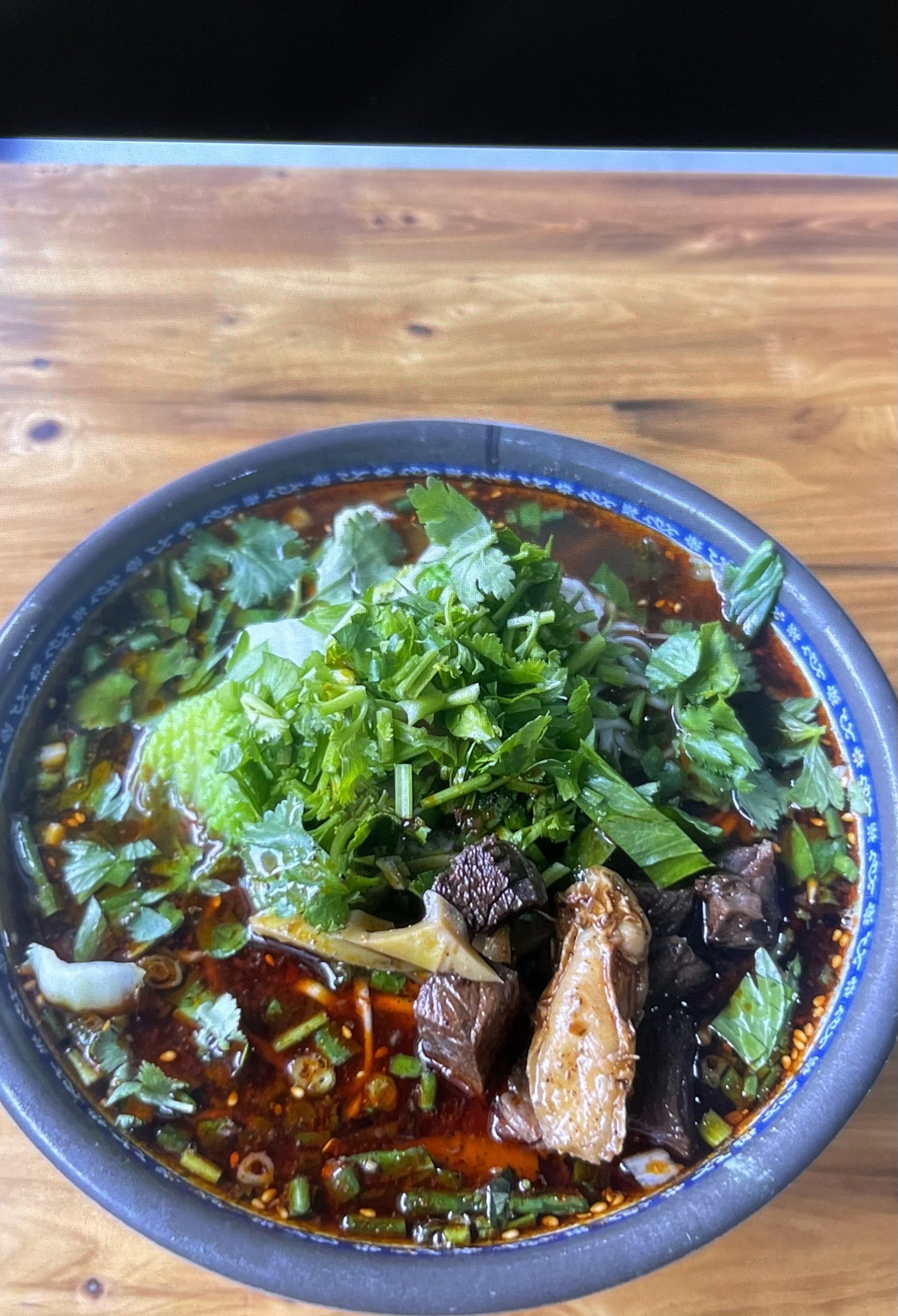 Spicy Beef Noodle Soup | ["beef","noodles","cilantro","green onions","spices"] | ["beef:200g","noodles:150g","vegetables:100g"] | |