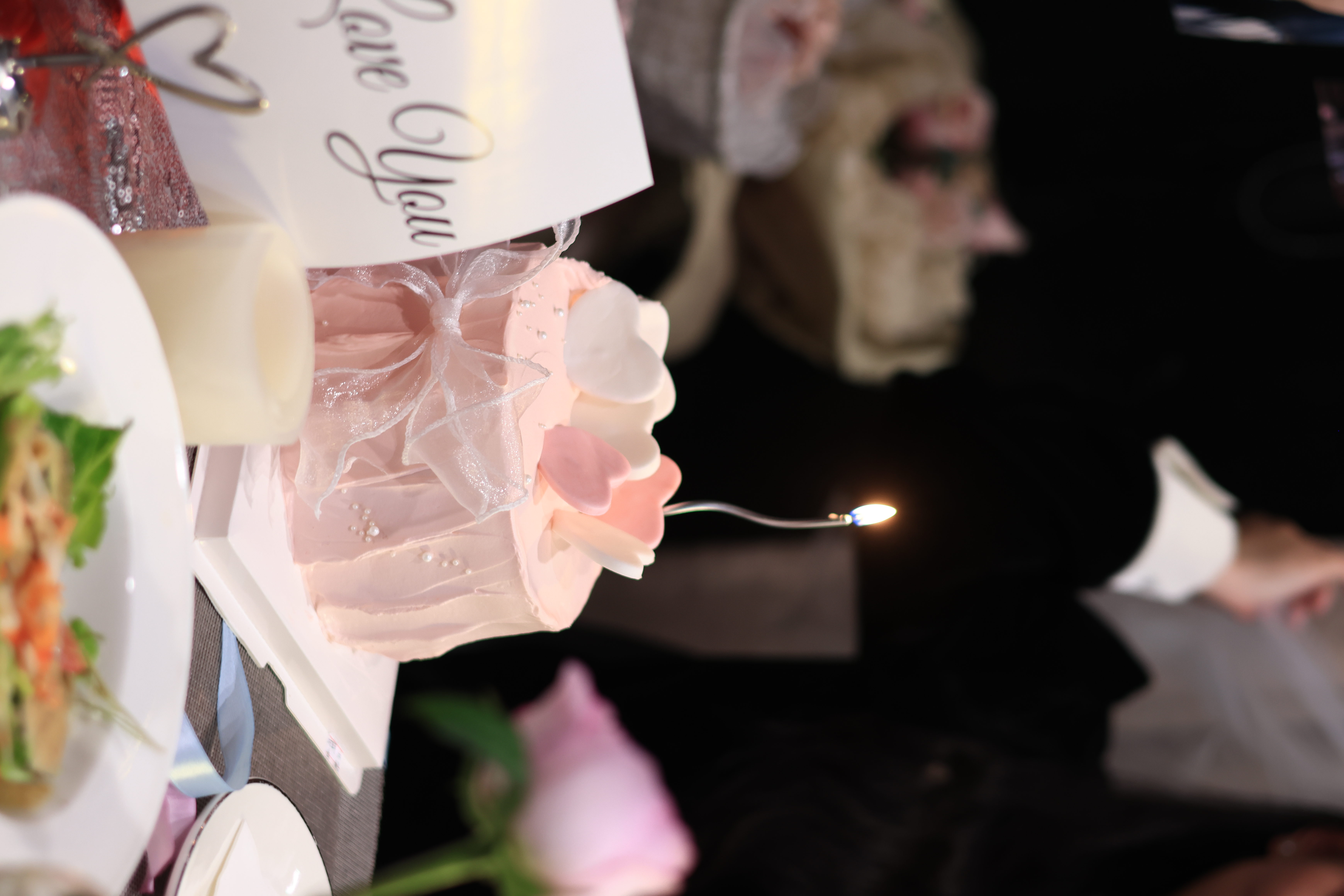 Birthday Cake and Salad | ["cake","lettuce","tomato","dressing"] | ["cake:150g","salad:100g"] | |
