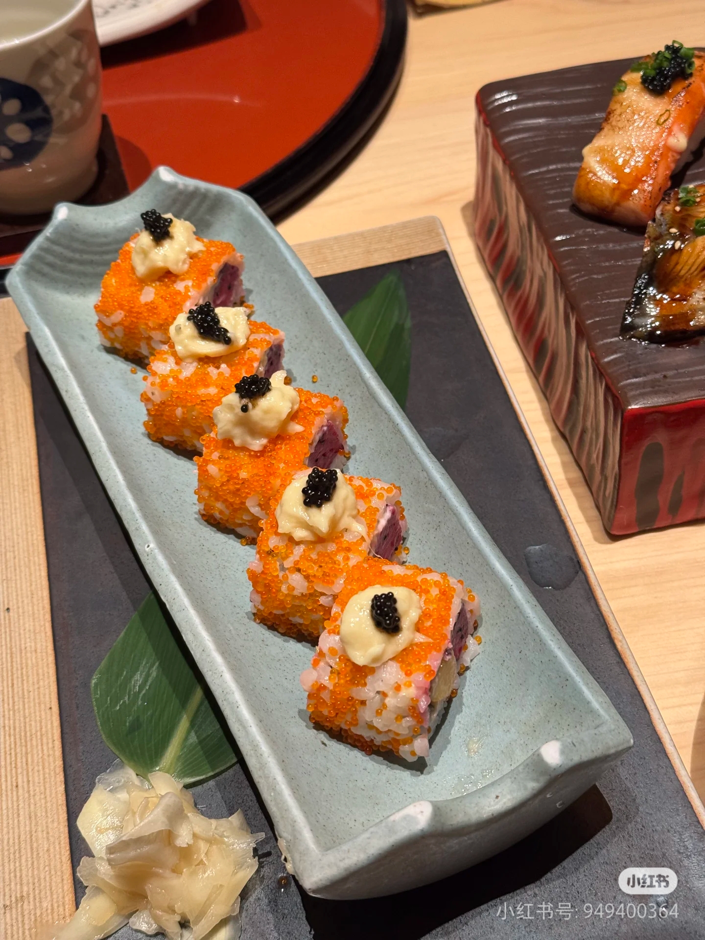 Sushi | ["rice","fish","seaweed","fish roe","wasabi","ginger"] | ["sushi:200g","wasabi:10g","ginger:20g"] | |