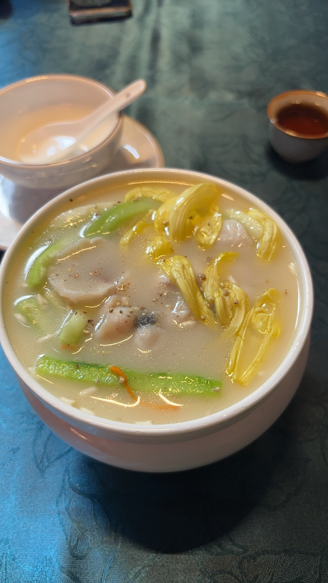Seafood Noodle Soup | ["noodles","seafood","fried tofu","chili peppers","vegetables"] | ["noodles:200g","seafood:150g","fried items:100g","vegetables:50g"] | |